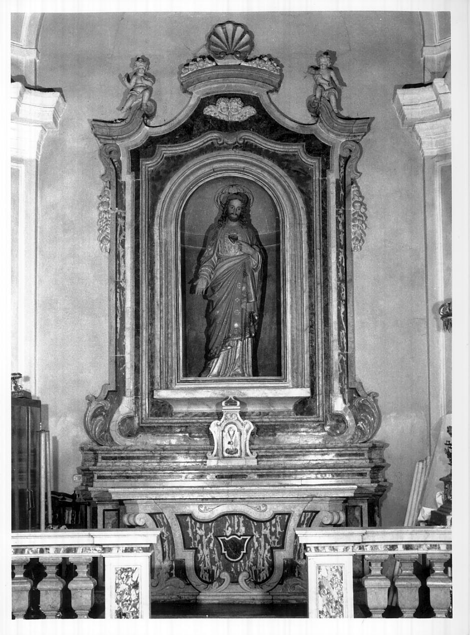 Marmo giallo di Torri. Altare in marmo ; sulla cimasa statue di putti in stucco ; tabernacolo in marmo con sportello in legno intagliato, dorato, argentato