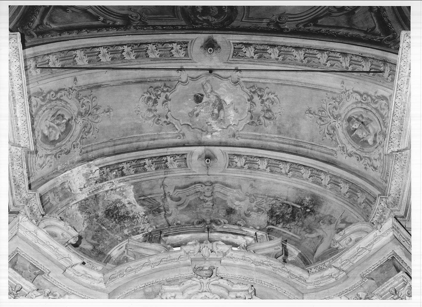 Decorazioni: a palmette; festoni di frutta; cartella con vaso contenente f oglie e frutta; foglie d'acanto; foglie d'alloro. Figure: angioletti; angi oletti in ovali con decorazione fitomorfa; angioletto in cartella mistilin ea