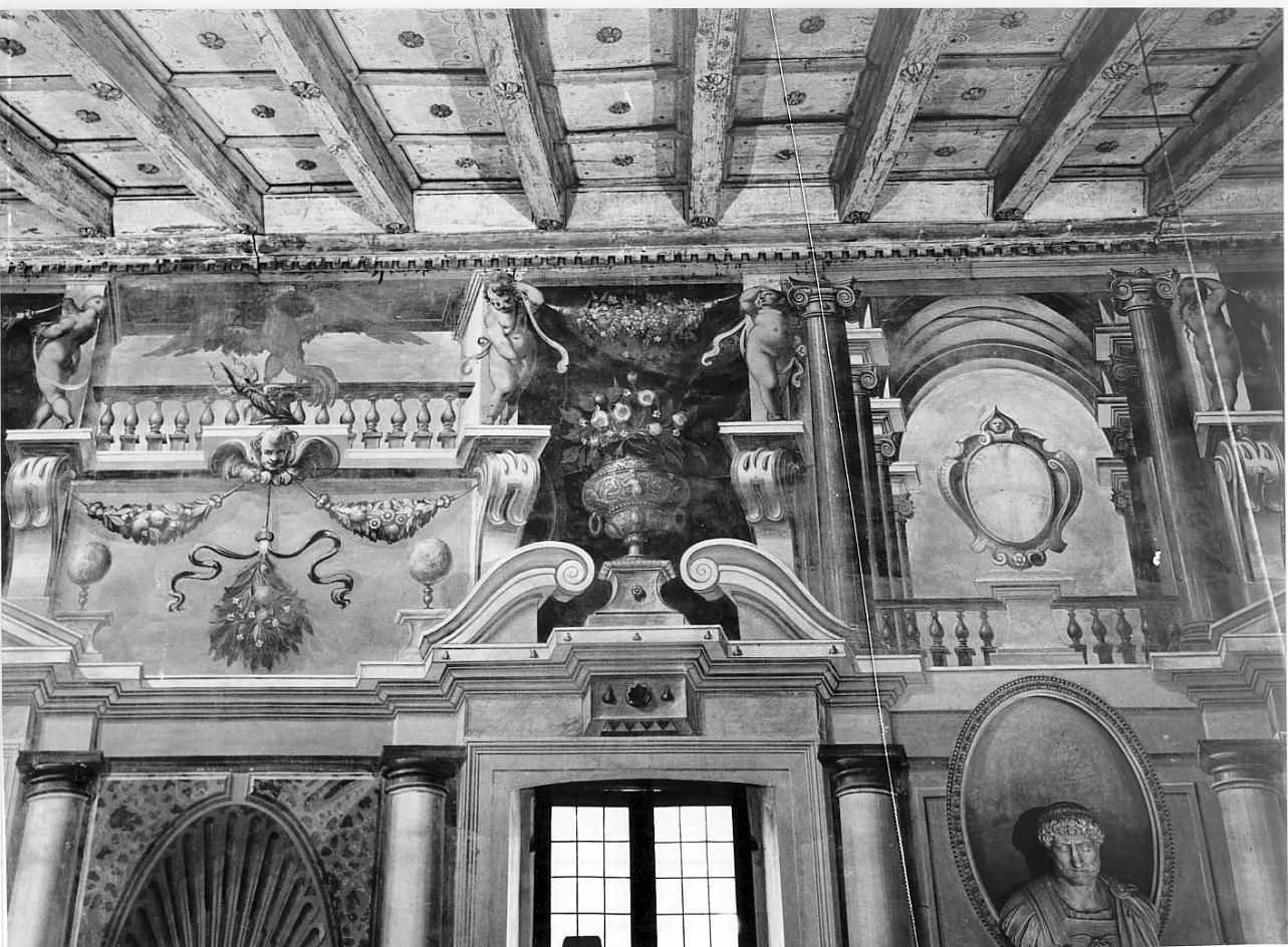 - NOTIZIE STORICO CRITICHE eretta nel 1583-84, la Galleria degli Antichi ricevette in origine una decorazione, perduta, basata su ritratti di uomini illustri. Successivamente, tra il 1586 e il 1587 la decorazione si arricchì delle prospettive terminali opera dei fratelli Giovanni e Alessandro Alberti. Il completamento della Galleria trova discordi opinioni tra gli studiosi, anche se generalmente si tende a collocare la decorazione delle pareti lunghe in epoca successiva a quella vespasianea