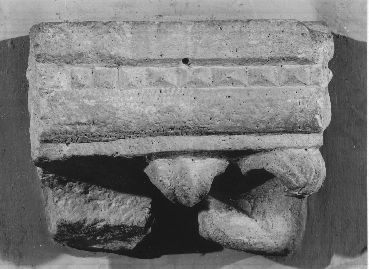 Mensola ornata con volute vegetali e fregio a bugnato