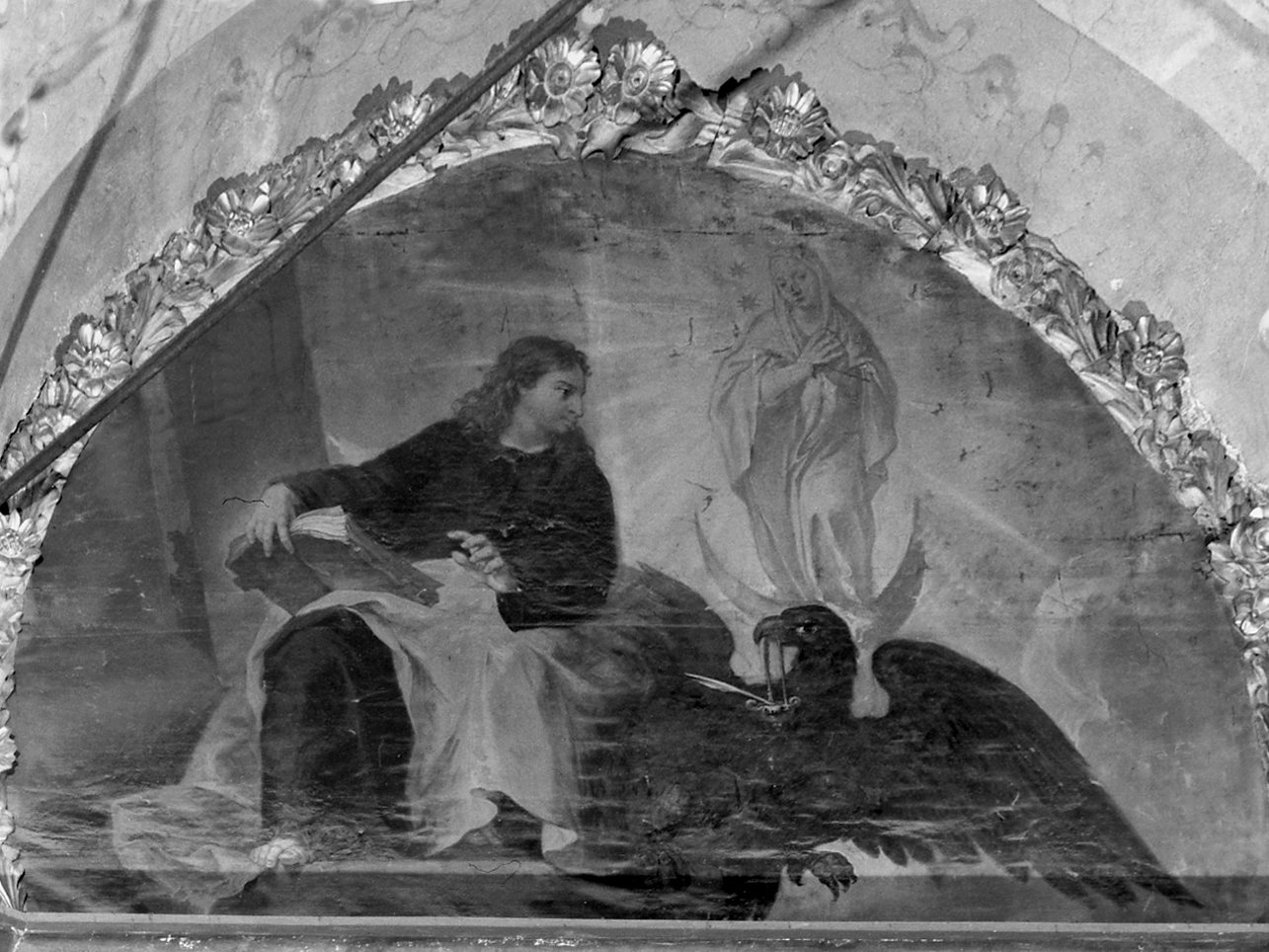 Personaggi: San Giovanni Evangelista. Attributi: (San Giovanni Evangelista) aquila; Vangelo; penna