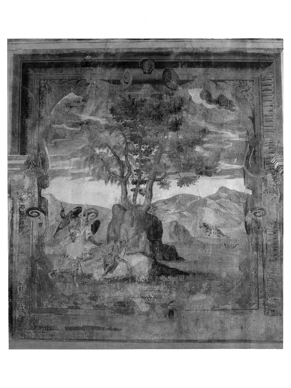 - NOTIZIE STORICO CRITICHE L'Anelli (1987) propone di attribuire la decorazione dipinta della stanza in esame a Pietro Marone. Diverse infatti sono le somiglianze stilistiche con le altre opere pittoriche realizzate dall'artista a Rodengo. Confronti si possono stabilire con la sala di Giobbe, dove si ritrovano i medesimi paesaggi, come con la decorazione della Galleria. Gli affreschi vengono datati intorno al 1599, data presente sia sul Cristo risorto, affrescato dal Marone nella cappella iemale, che negli affreschi della Galleria