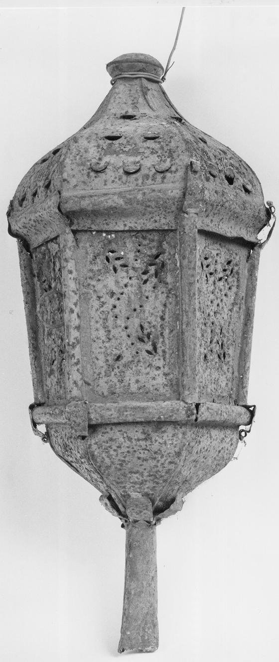 - NOTIZIE STORICO CRITICHE L'oggetto di non completa leggibilità a causa della notevole consunzione e ossidazione del metallo appare confrontabile con lanterna processionale dipinta, meglio conservata, collocata nel medesimo museo, attribuibile ad artigianto veneto della metà del secolo XVIII. A tale epoca è pertanto assegnabile anche l'oggetto in esame