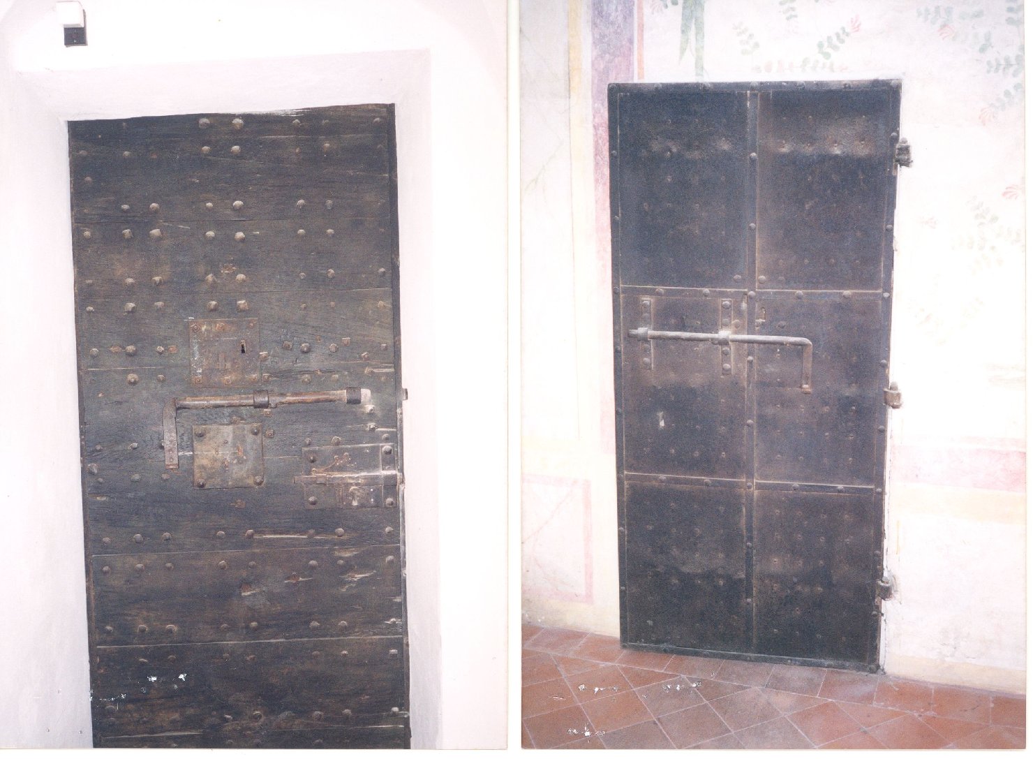 - NOTIZIE STORICO CRITICHE I robusti rinforzi metallici che caratterizzano la conformazione generale della porta, sono giustificati dalla sua immediata vicinanza con l'esterno. Risulta abbastanza difficile una sua datazione, mancando qualsiasi elemento di riferimento stilistico-formale. Tuttavia la conformazione generale e le caratteristiche dei sistemi di chiusura richiamano le porte delle carceri dei Martiri di Belfiore nel Castello di San Giorgio, ascrivibili al primo Ottocento. Sempre a giustificazione del carattere quasi blindato della porta, si ricorda anche che nel corso del Settecento l'appartamento Grande di Castello, a cui il battente attiene, insieme all'attiguo appartamento di Troia, aveva funzioni militari in quanto sede dell'Arsenale dell'Imperial Regia Artiglieria (C. Bonora Previdi, 2003)