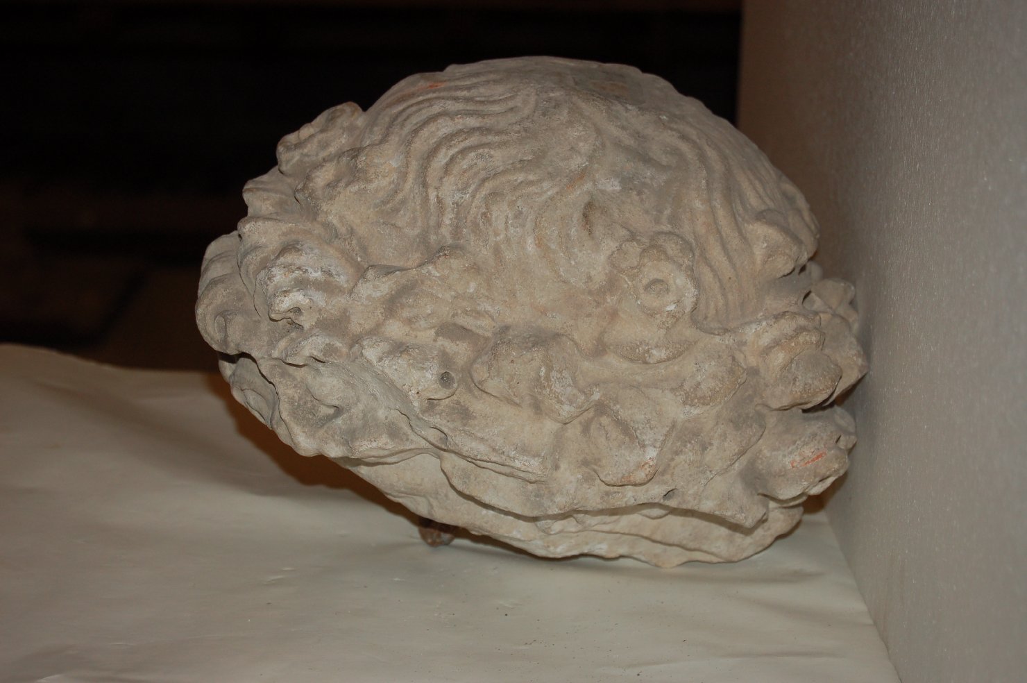 - NOTIZIE STORICO CRITICHE Della testa appartenente in origine ad una statua, o più genericamente ad una scultura non identificabile, manca totalmente il viso a parte una treccia che doveva coronare la fronte. La capigliatura è ricciuta con onde che partono dal vertice del cranio mentre abbondanti riccioli, eseguiti a trapano, dovevano incorniciare il viso; tra essi passa una corona di foglie e fiori. Il tipo è irriconoscibile ma l'esecuzione della capigliatura è l'unico elemento che permette una generica datazione alla seconda metà del II secolo. Provenienza ignota. Al Museo dell'Accademia nel tardo Settecento. Trasferito con questo al Palazzo degli Studi nel 1784 (circa). Poi a Palazzo Ducale a seguito della Convenzione del 1915 tra Comune di Mantova e Stato Italiano