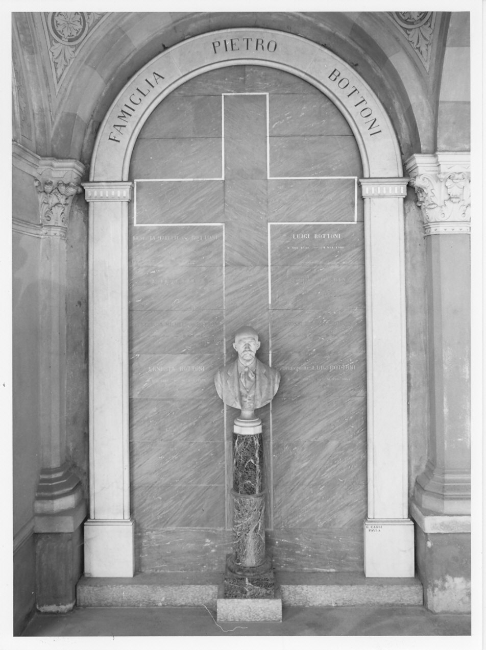 Monumento funebre della famiglia di Pietro Bottoni. Edicola in marmo formata da un arco a tutto sesto che racchiude il simbolo della croce (marcata oro). Antistante si trova il busto-ritratto di Luigi Bottoni posto su una colonna in marmo