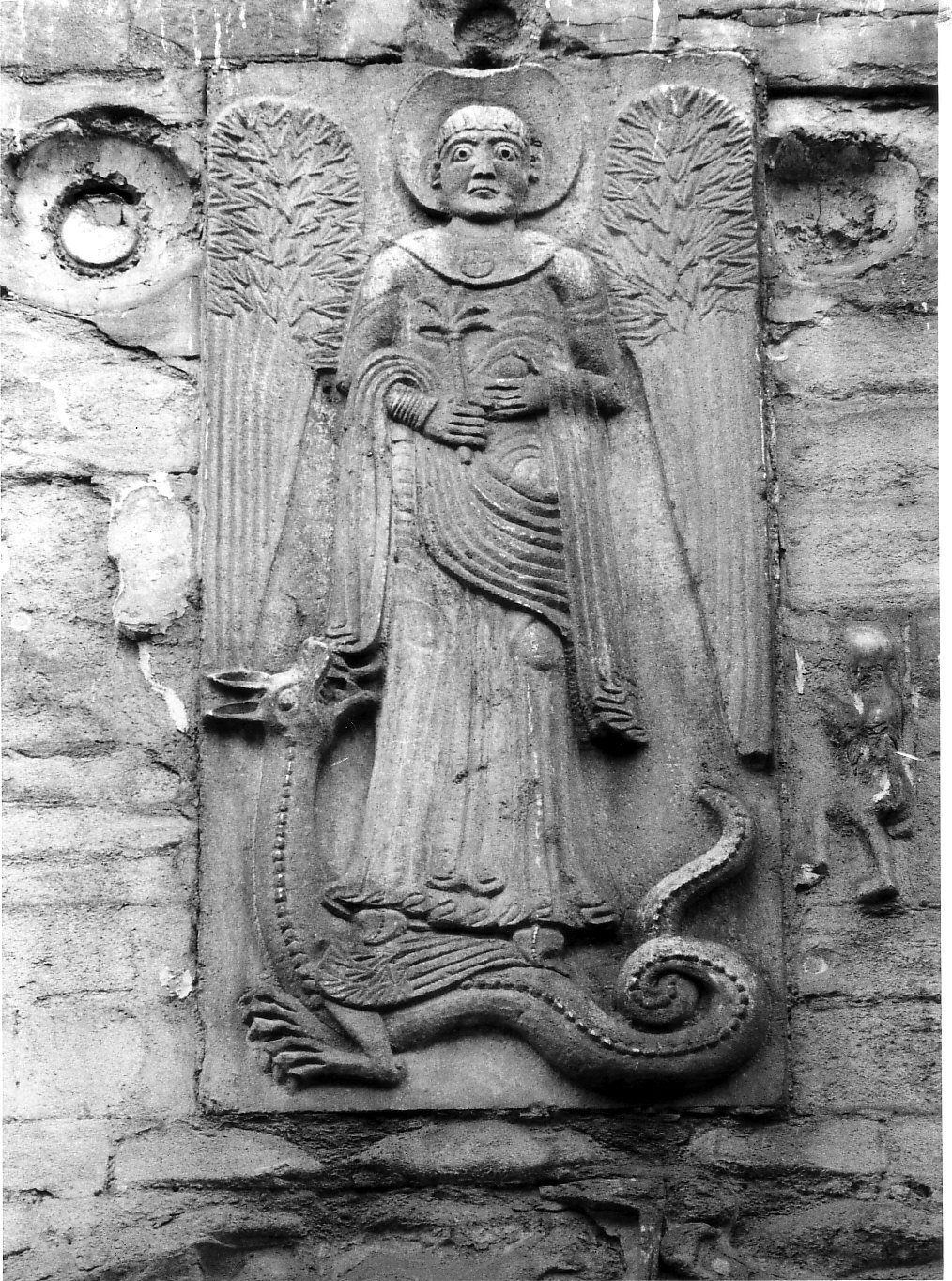 Decorazione plastica del portale centrale raffigurante San Michele Arcangelo