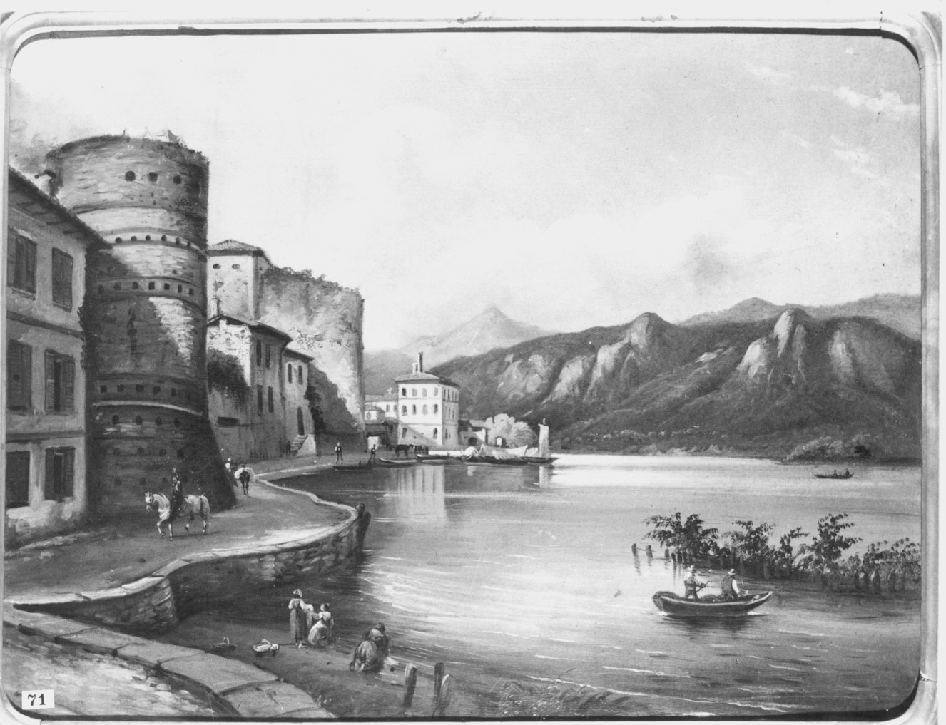 - NOTIZIE STORICO CRITICHE Di notevole interesse iconografico. Il dipinto riveste un certo interesse iconografico poichè rappresenta il Castello di Brivio precedentemente alle trasformazioni subite nell'Ottocento per l'adattamento a filanda, che comportarono, tra l'altro, l'apertura di finestre ad arco acuto nel prospetto affacciato sul fiume. Alla pittrice Maria Teresa Mariani sono attribuiti altri quadri nella Pinacoteca Civica di Como raffiguranti vedute del Lario (nn. inventario: 70, 72, 73, 92) tra i quali una rappresentazione di Como vista da S. Agostino, donata da Andrea Pedraglio nel 1914 (Archivio Musei Civici di Como, Registro degli ingresso, n. 460). La produzione dell'artista si inserisce nel filone della pittura di paesaggio che, dopo l'Unità d'Italia, aderisce in Lombardia alle nuove esigenze di rappresentazione "en plein air", in diretto rapporto con il vero, conformi agli orientamenti della scuola di paesaggio dell'Accademia di Brera, diretta da Luigi Riccardi tra il 1865 e il 1877.Bibliografia: N. 71 del Catalogo Opere Pittoriche del Comune di Como.Restauri: Occorrono rifacimento del rattoppo, stesura della tela con cambio del telaio e pulitura generale