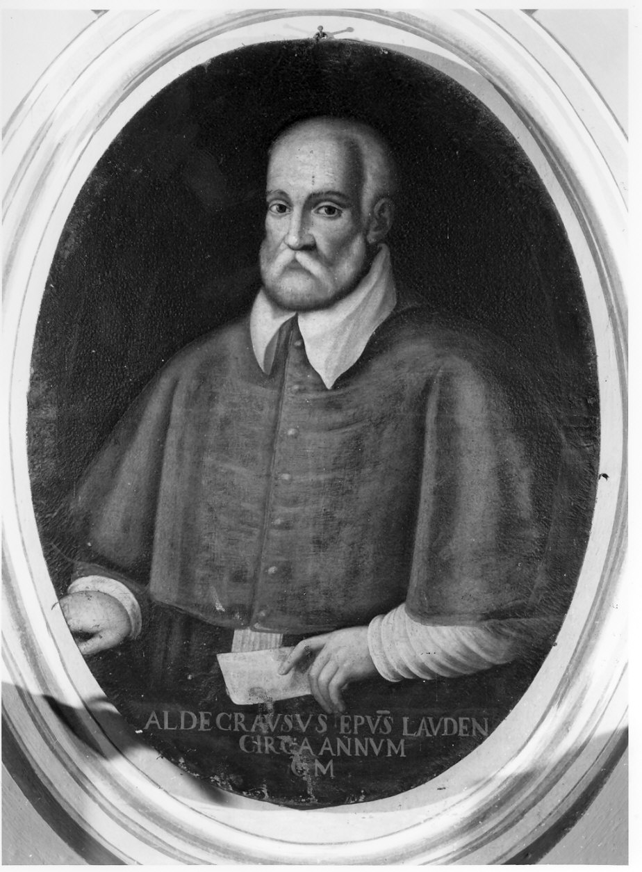 - NOTIZIE STORICO CRITICHE Il dipinto, esposto nella Galleria dei Ritratti, appartiene alla serie di 19 tele raffiguranti i primi vescovi lodigiani, eseguite a partire dall'ultimo quarto del XVII secolo. Il vescovo ritratto è Adelgrauso, documentato tra il 951 e il 970 circa. La data 900 dell'iscrizione è approssimativa, forse perché non si conoscevano i documenti o per un errore di trascrizione (la scritta appare ridipinta); anche la dizione del nome è inesatta (cfr. L. Samarati "I vescovi di Lodi", Milano 1965, p. 37)