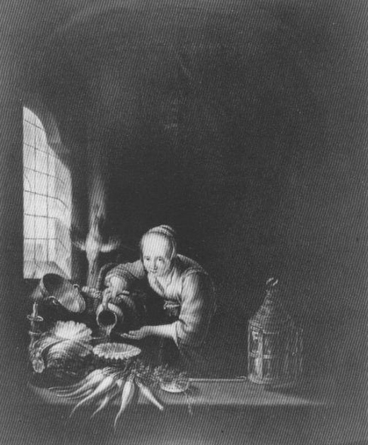 - NOTIZIE STORICO CRITICHE L'opera, dalla scheda del catalogo Electa (1996), risulta attribuita a Gabriel Metsu, ma non viene specificato a chi risalga tale riferimento. Viene anche indicato che potrebbe trattarsi di una copia da un modello che però non è stato individuato o di una libera interpretazione nello stile dei soggetti della tradizione derivante dalle formule di Gerard Dou. Viene anche segnalato che nel dipinto compaiono molti elementi figurativi presenti nelle composizioni di Van Mieris il Vecchio