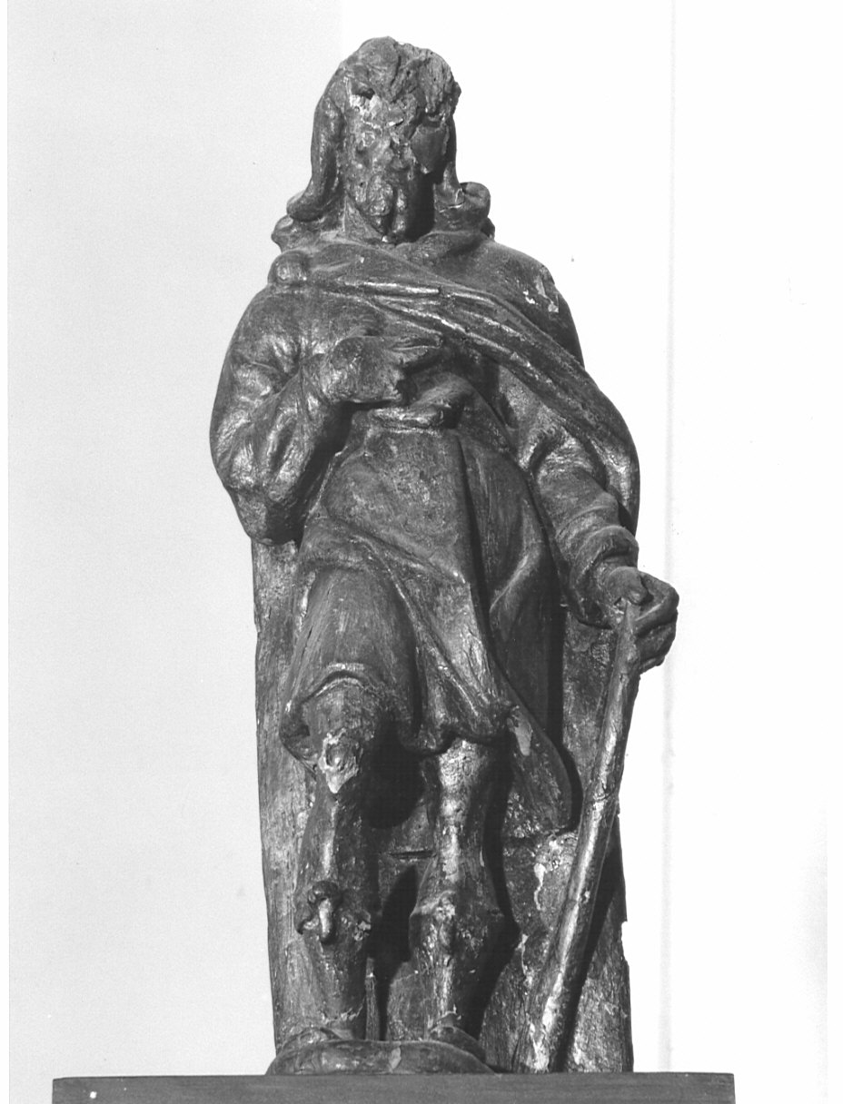 Personaggi: San Rocco. Abbigliamento: (San Rocco) veste corta; lungo manto