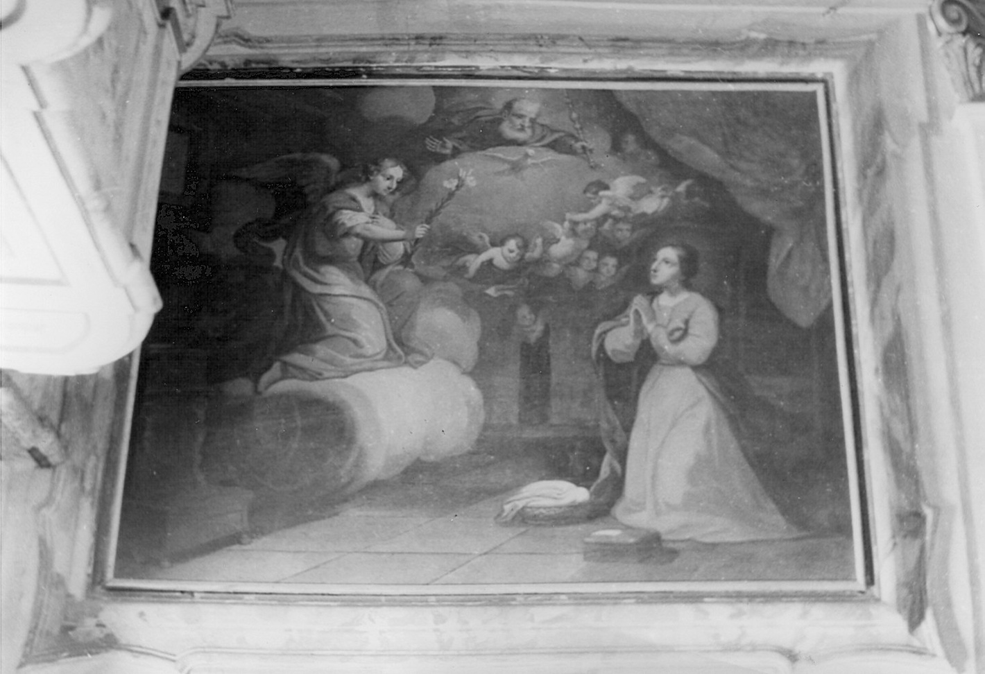 Il dipinto è incorniciato in una cornice a stucco, inquadrata nella decorazione a fresco della parete