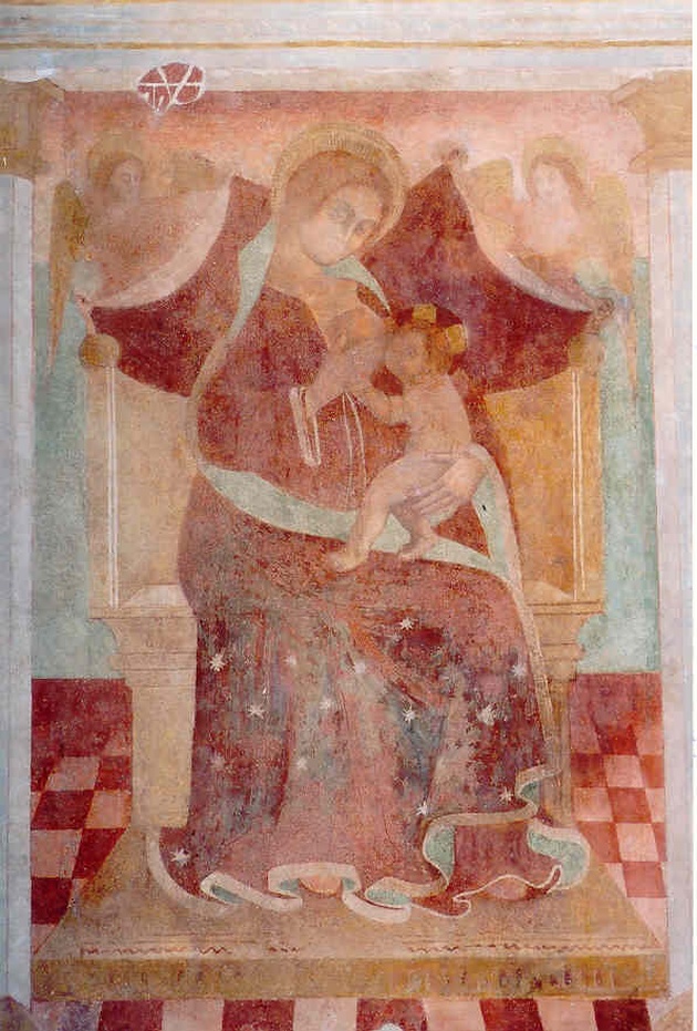 Personaggi: Madonna; Gesù BambinoFigure: angeliOggetti: tronoArchitetture: colonne; pavimento a scacchiera