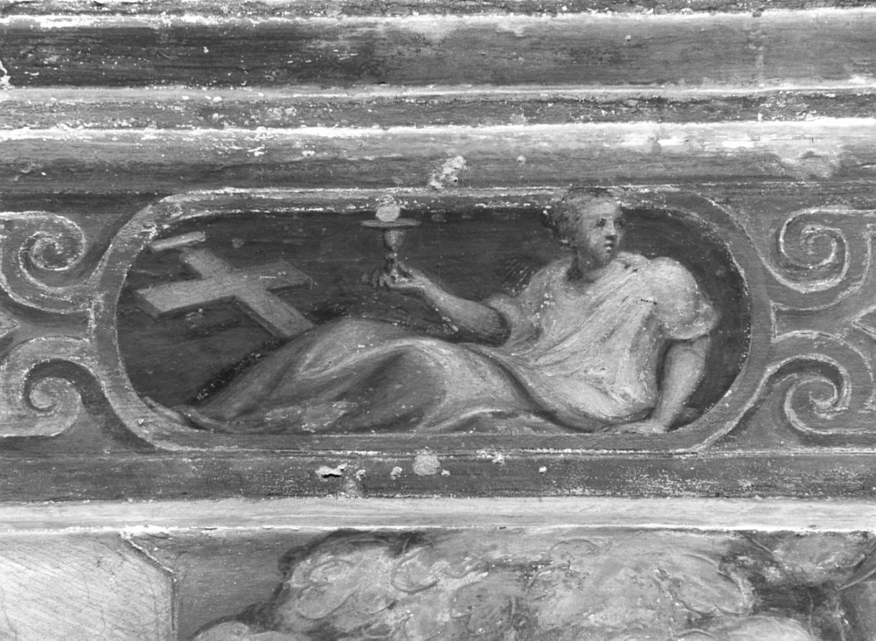 - NOTIZIE STORICO CRITICHE La decorazione è senz'altro contemporanea all'esecuzione dei due affreschi della parete divisoria dovuti a Giulio e Antonio Campi; ad essi sono da riferire anche queste figure anche se non risulta facile distingure le due mani.A Giulio sembrano appartenere la Fortezza e i due monocromi in basso, ad Antonio le figure restanti (Giulio si distingue per la maggiore scioltezza e sinuosità delle pose). La data di esecuzione dovrebbe aggirarsi intorno al 1560
