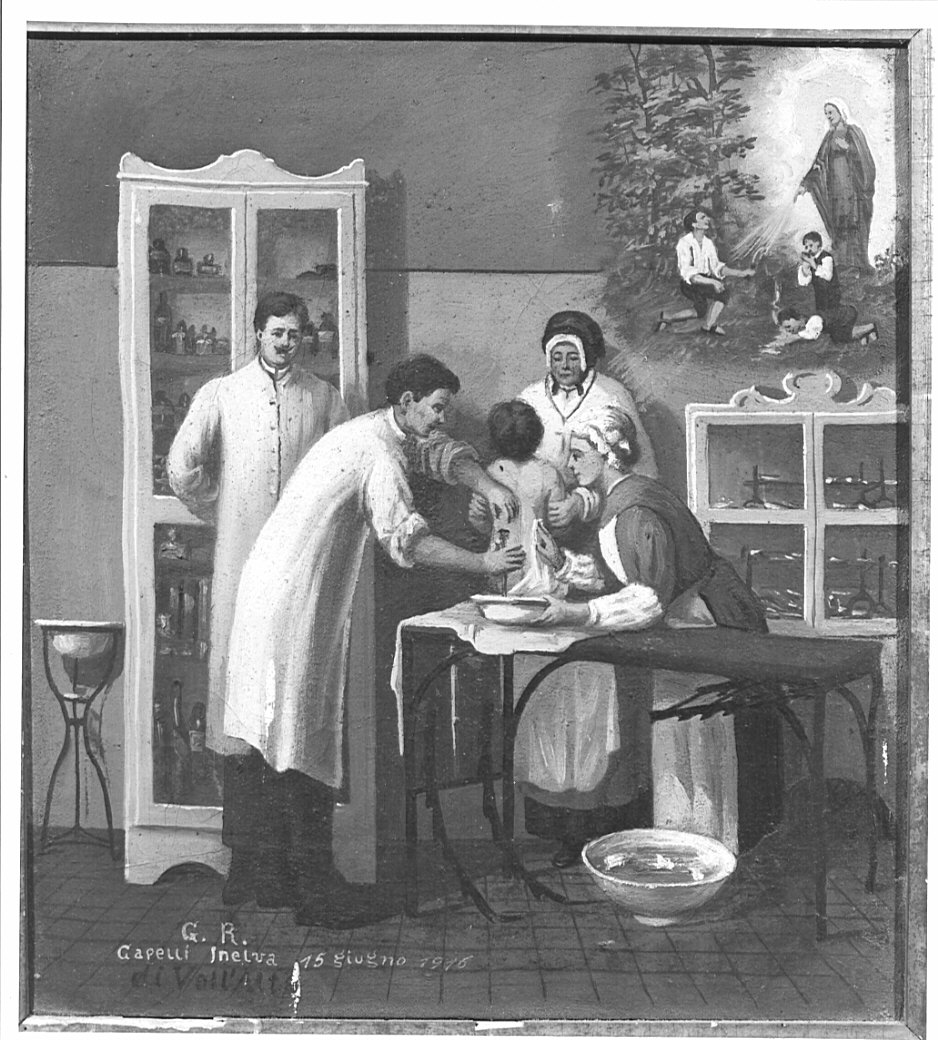 Nel dipinto rappresentato un intervento medico su un bambino