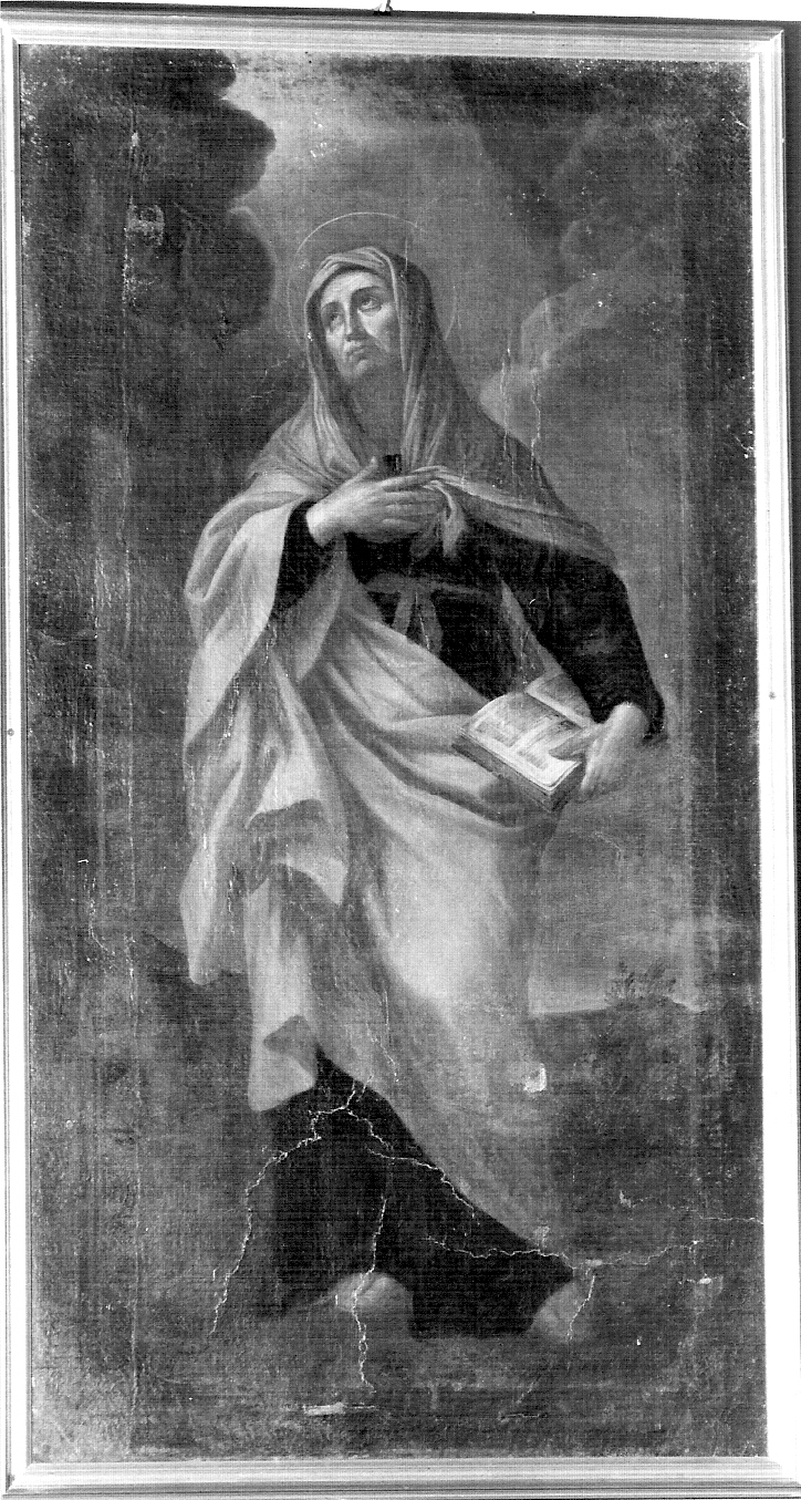 - NOTIZIE STORICO CRITICHE In questo dipinto non sono visibili le iscrizioni che compaiono su tutti gli altri quadri della serie ma le dimensioni e lo stile riconducono indubbiamente a Carlo Gerolamo Castelli. L'identificazione della figura in Santa Monica è puramente ipotetica e motivata solo dalla consuetudine di raffigurarla come donna anziana che regge un libro