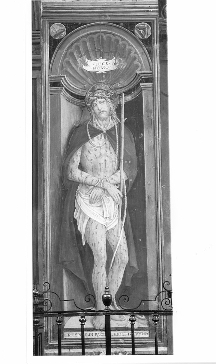 - ISCRIZIONI entro cartglio sopra il Cristo / sotto il Cristo - ECCE HOMO / RESPICE IN FACIE CHRISTI TUUI - a pennello - latino