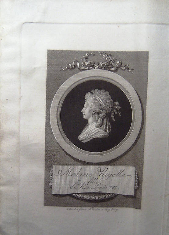Ritratti. Personaggi: Madame Royalle. Sculture: cornice; mensola
