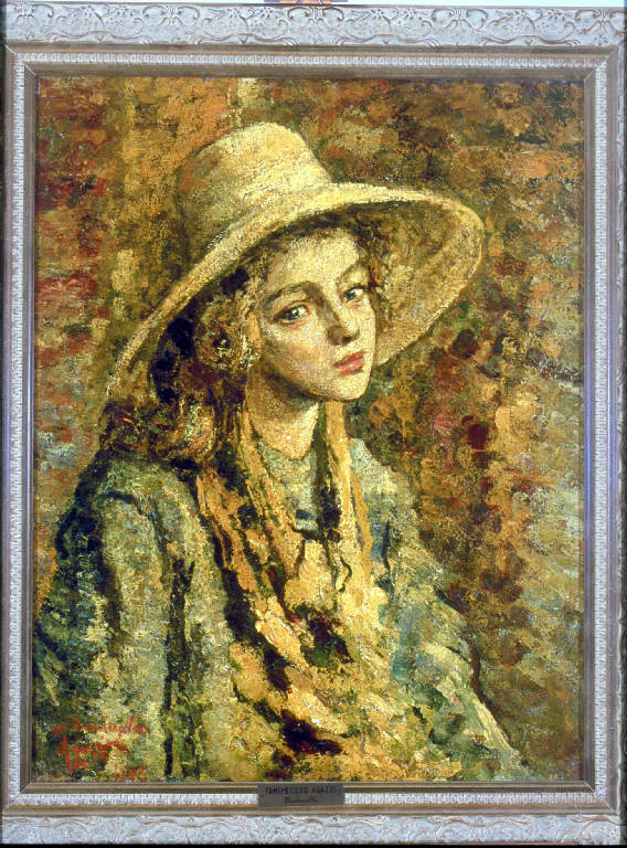 - NOTIZIE STORICO CRITICHE Il dipinto, che raffigura una giovane donna a mezzo busto, vista di tre quarti, rientra nella produzione tipica del pittore, formatosi all'Accademia Carrara di Bergamo sotto la guida di Cesare Tallone e stabilitosi presto a Milano. Si dedicò anche alla rappresentazione di soggetti di genere e di paesaggi partecipando con successo, a partire dal 1899, a molte mostre italiane ed estere. Nel 1942, in seguito a un bombardamento che distrusse il suo studio, si ritirò a Bergamo