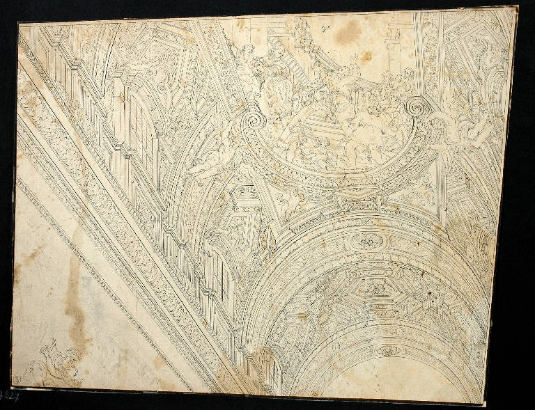 ARCHITETTURE: soffitto con volta a botte decorato a cassettoni con scudo centrale figurato retto da finte cariatidi ; finestre incorniciate da motivi rococò e pareti riccamente decorate
