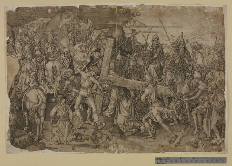 Personaggi: Gesù; Madonna. Strumenti della Passione: croce; corona di spine. Figure: soldati. Armi: lance; spade. Animali: cani; cavalli. Abbigliamento maschile. Vedute: Gerusalemme