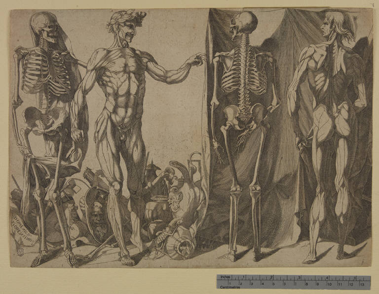 Scheletri. Simboli: (potere terreno) armi; scudi; denaro; monete; vasi; corona