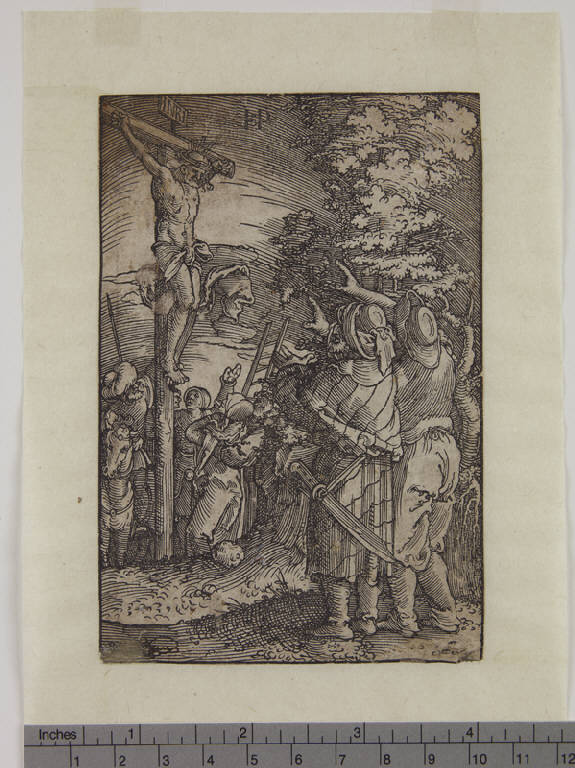 - NOTIZIE STORICO CRITICHE Copia anonima non contemplata in Hollstein: sono numerose le differenze rispetto all'originali (ad esempio: piege dei calzoni dell'uomo di spalle più a destra; ombreggiature sul legno della croce)