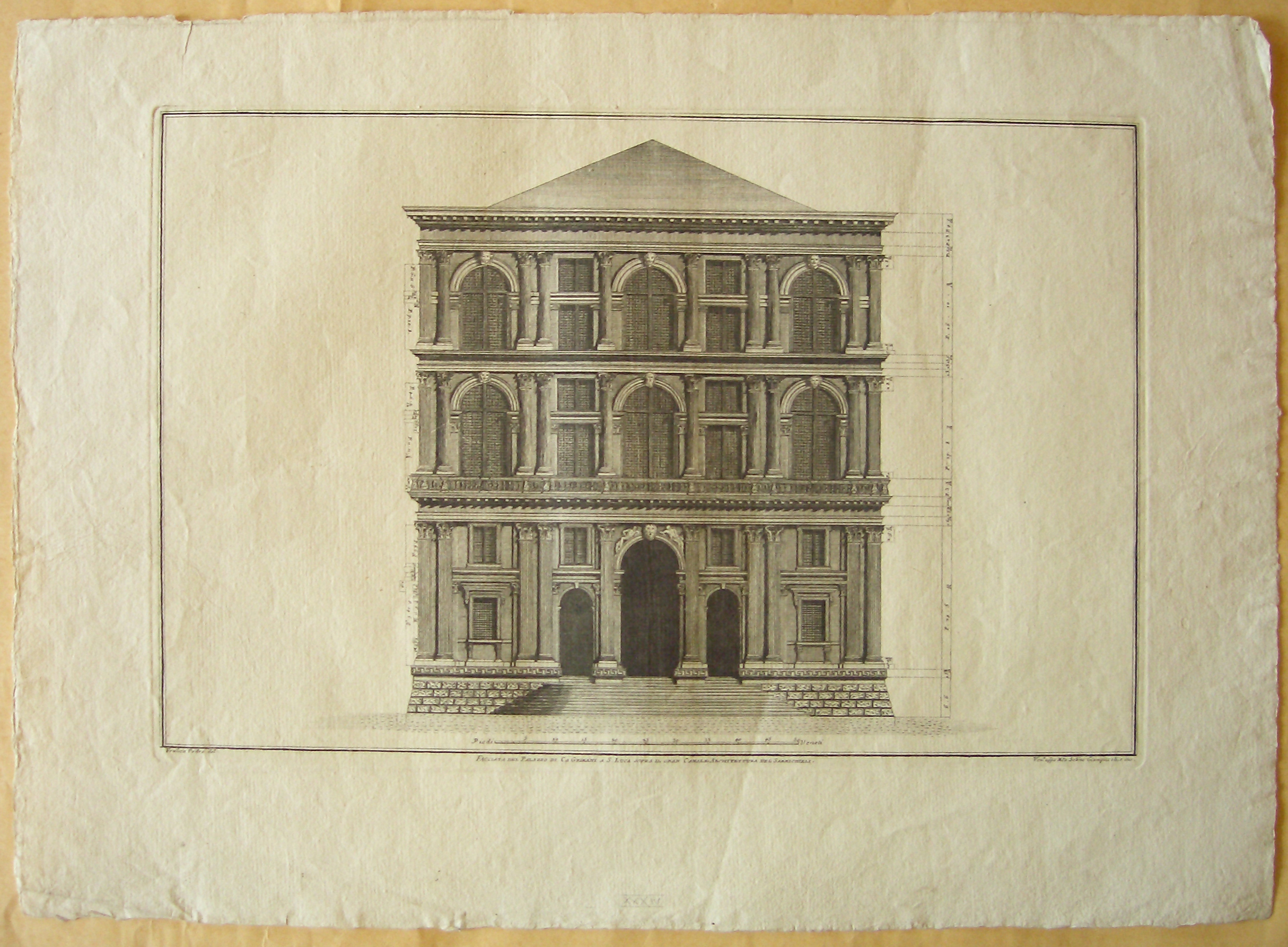 - ISCRIZIONI in basso, al centro - PIEDI 5 10 15 20 25 30 35 40 45 50 VENETI/ FACCIATA DEL PALAZZO DI CA GRIMANI A S.LUCA SOPRA IL GRAN CANALE. ARCHITETTURA DEL SANMICHELI - capitale - a stampa -