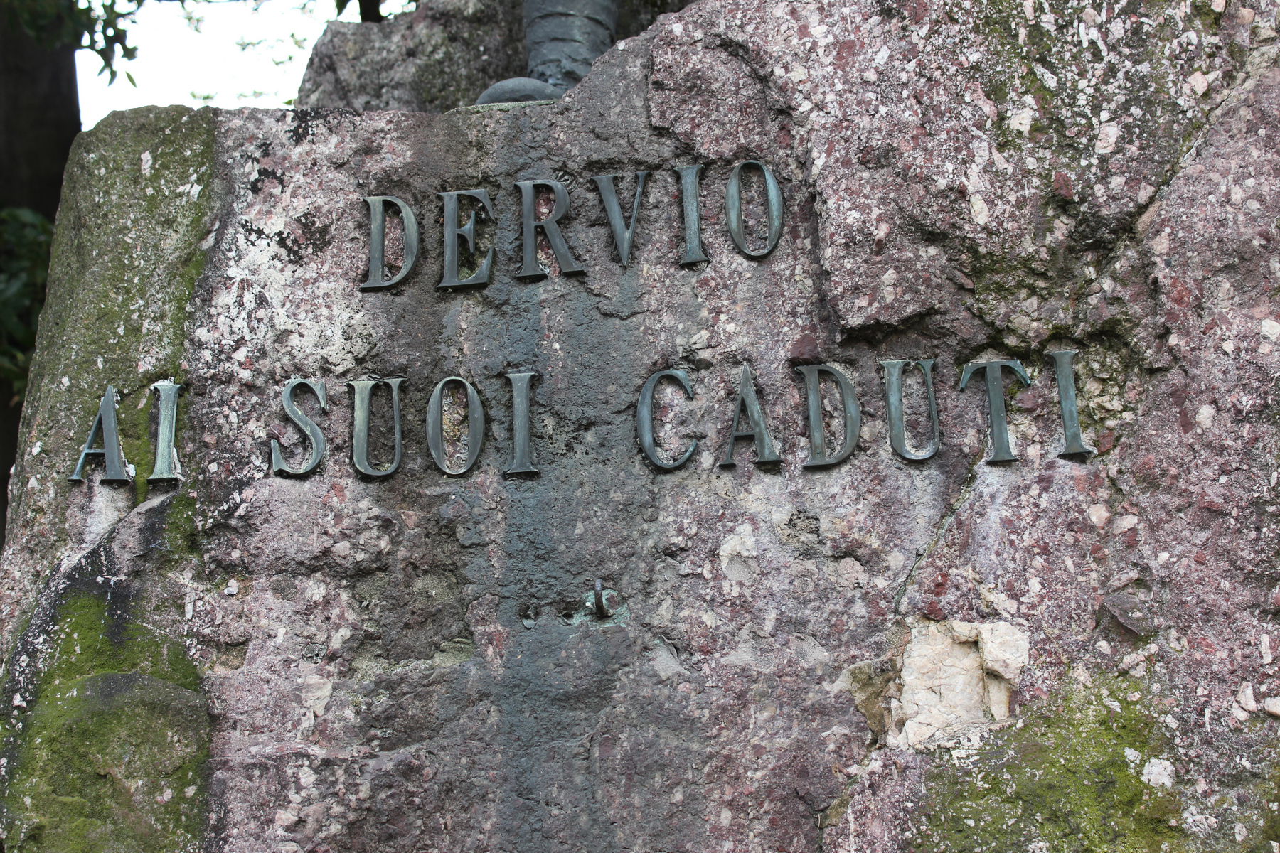 - ISCRIZIONI sulla fronte - DERVIO / AI SUOI CADUTI - capitale - a caratteri applicati in bronzo - italiano