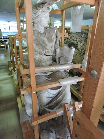 - NOTIZIE STORICO CRITICHE Il gesso è cavato da una statua in marmo conservata nei Musei Vaticani, Museo Pio Clementino, Sala delle Muse (inv. 308). Raffigura Tersicore, la musa della danza e della lirica corale mentre suona la lira. Nel marmo romano la testa non è pertinente al corpo anche se è anch'essa antica. La statua fu trovata nella villa di Cassio presso Tivoli nel 1774 ed entrò in seguito a far parte delle collezioni pontifice. Non è possibile determinare se la firma "A. Galli" presente sul basamento indichi il formatore o sia uno sfregio vandalico successivo. Allo stato attuale degli studi non è possibile determinare la data d’ingresso del gesso nel patrimonio dell’Accademia né dove e quando sia stato formato, per questo vengono indicati come estremi cronologici il 1775 circa e il 1963. E’ infatti a partire dall’ultimo quarto del XVIII secolo che si diffonde l’uso di cavare gessi da opere antiche a fini didattici. La seconda data fa, invece, riferimento all’ultima acquisizione di calchi da parte dell’Accademia Carrara. Il gesso è stato preso in considerazione da Lucrezia Bertoli nella sua tesi di laurea, travisandone il soggetto