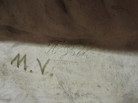 - ISCRIZIONI Sul basamento - M.V - Galli A. - capitale - A GRAFFITO - italiano
