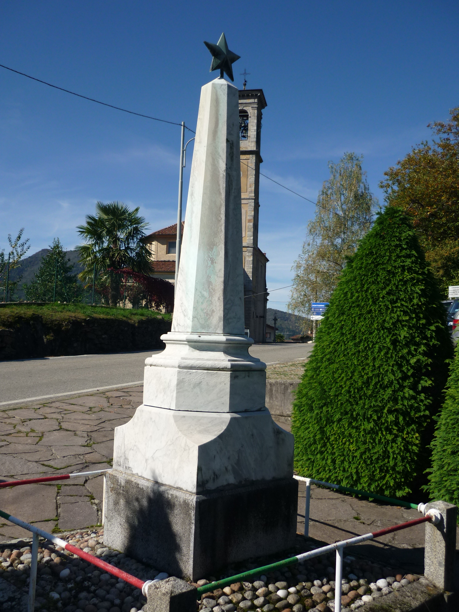 Monumento dedicato ai caduti della prima guerra mondiale; compare la lista dei caduti. L'area del monumento è delimitata da una serie di bassi pilastrini in pietra collegati tra loro da una struttura tubolare in ferro