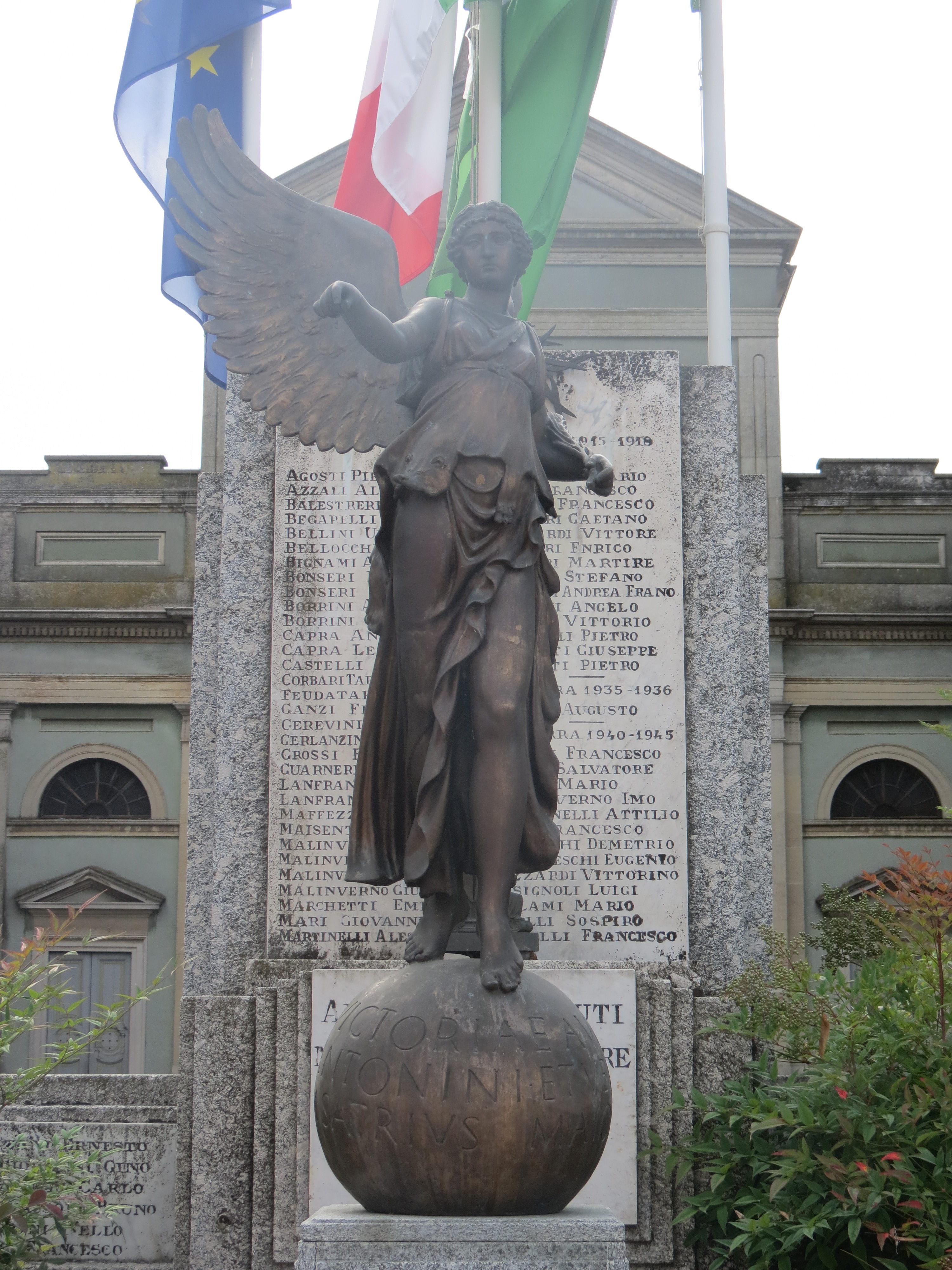 - NOTIZIE STORICO CRITICHE Secondo quanto riportato sulla didascalia apposta sul basamento della statua, la scultura è una copia della “Vittoria di Calvatone”, raffigurante la Vittoria, dea alata, su un globo iscritto. La statua originale in bronzo dorato, rinvenuta in frammenti nei dintorni di Calvatone nel 1836, si data tra il 161 e 169 d.C. per l’iscrizione sul globo e fu dedicata da Marcus Satrius Maior per celebrare una vittoria degli imperatori Marco Aurelio e Lucio Vero