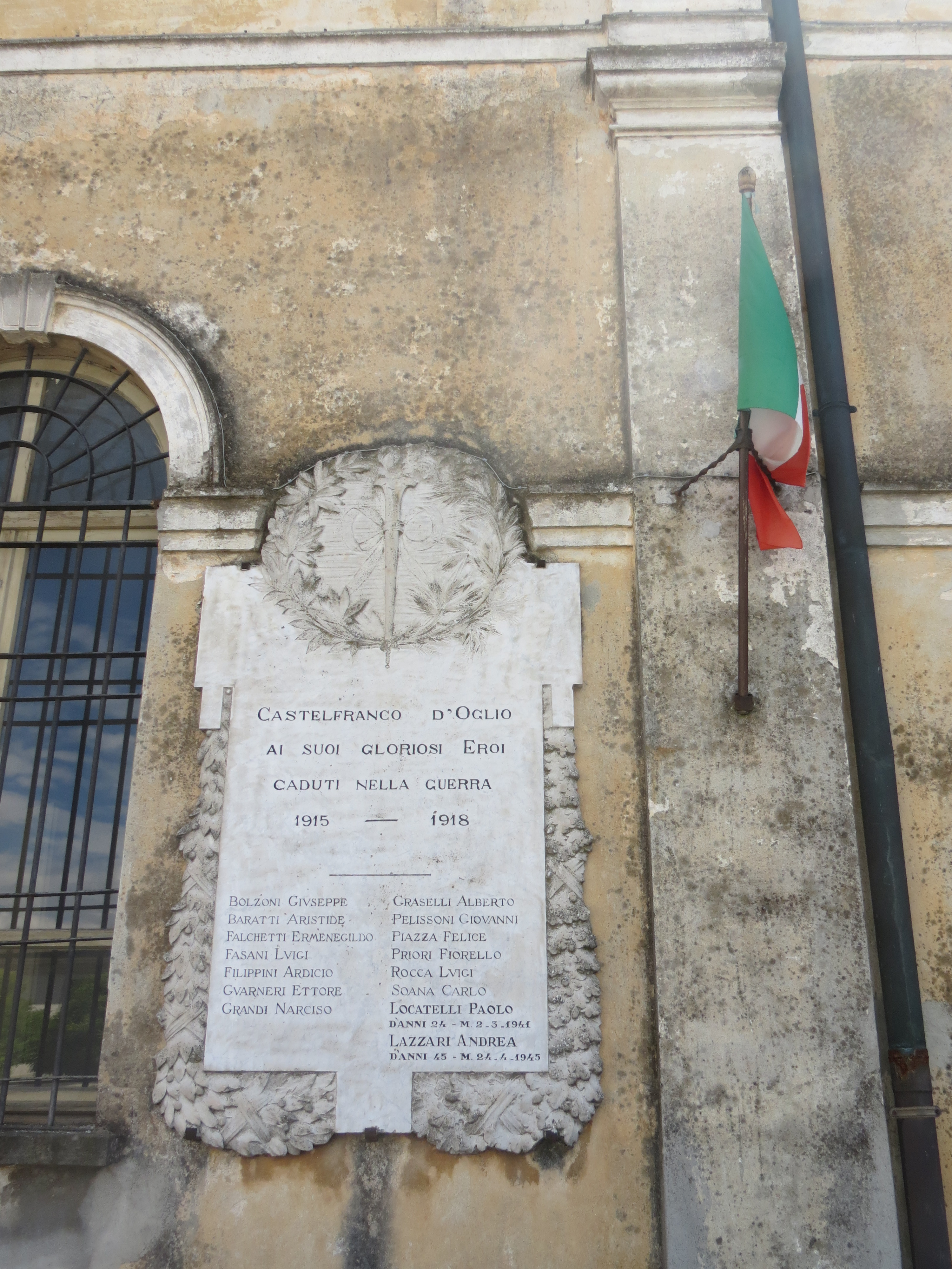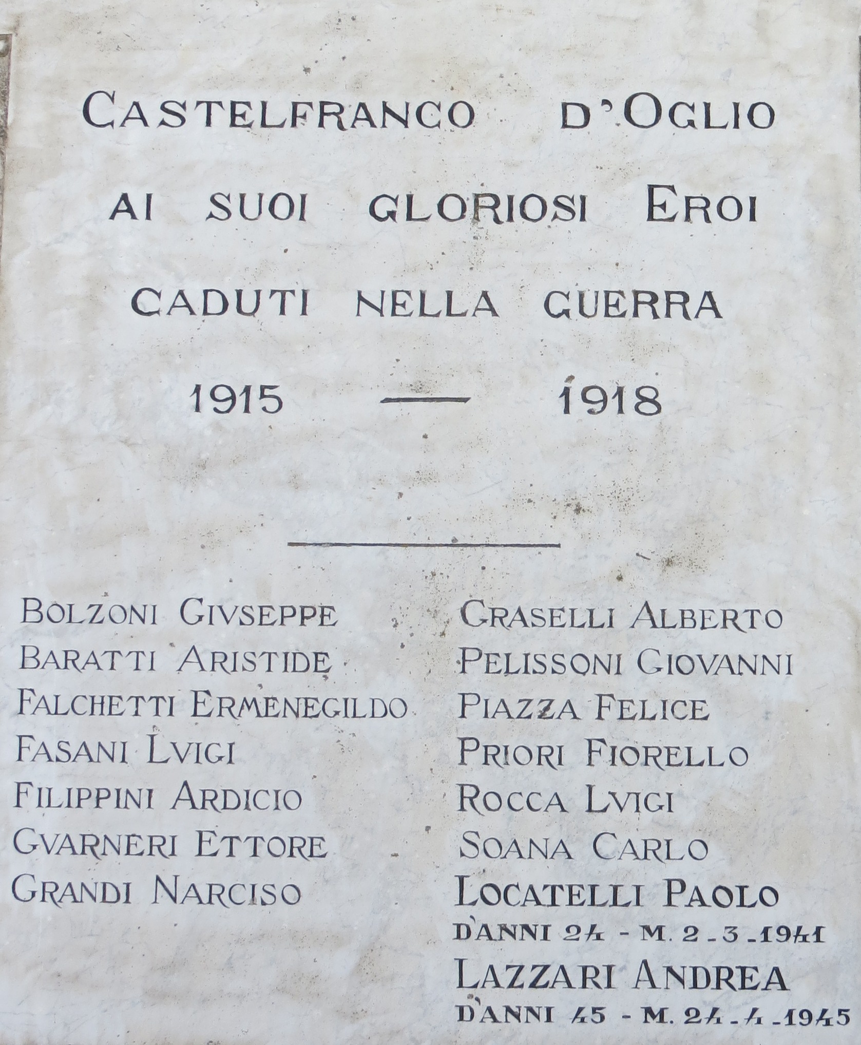 - ISCRIZIONI parte superiore - CASTELFRANCO D’OGLIO/ AI SUOI GLORIOSI EROI/ CADUTI NELLA GUERRA/ 1915-1918 - a incisione -