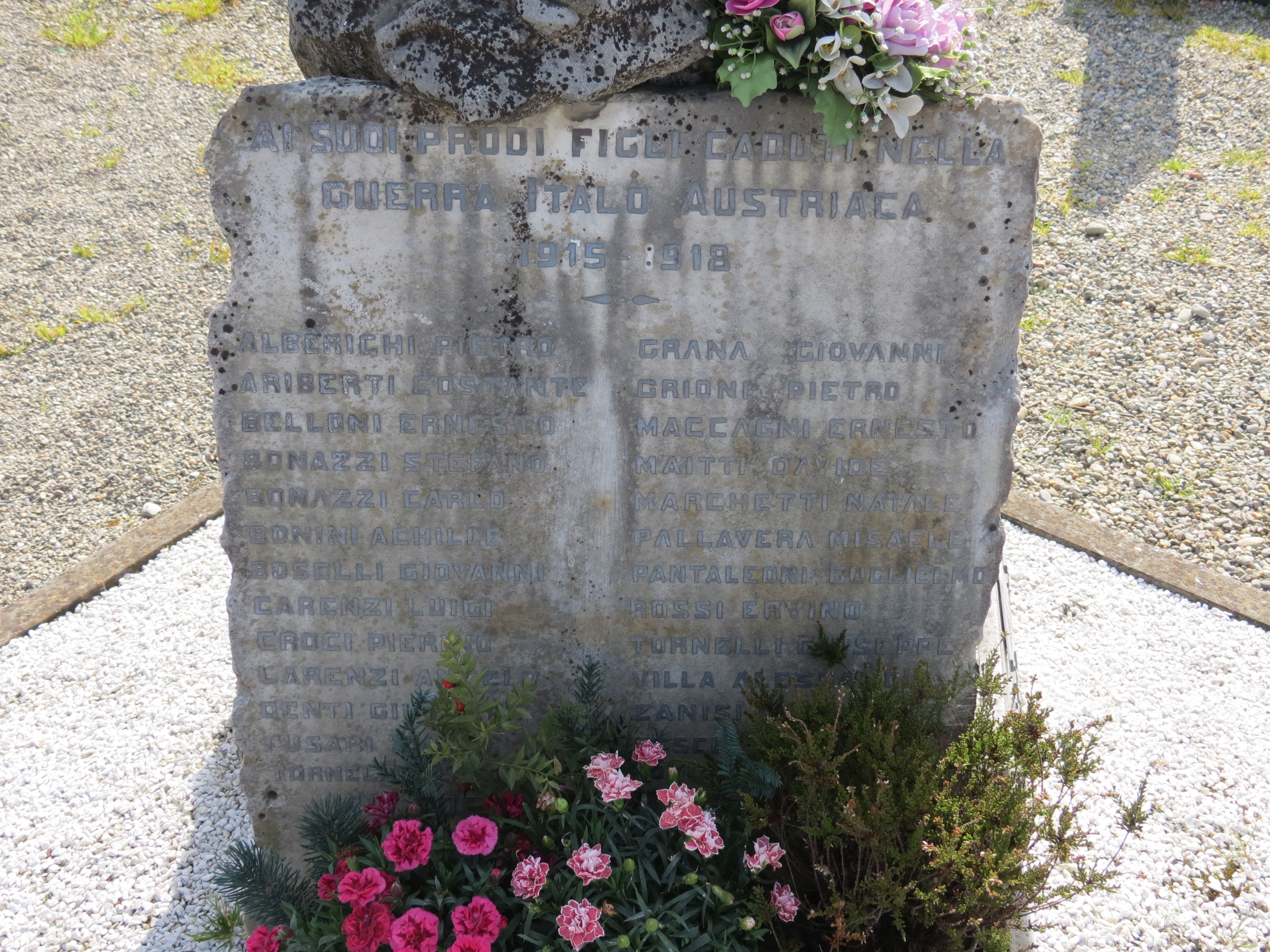 - ISCRIZIONI lapide in verticale sul lato frontale, parte superiore - AI SUOI PRODI FIGLI CADUTI NELLA/ GUERRA ITALO AUSTRIACA/ 1915-1918 -