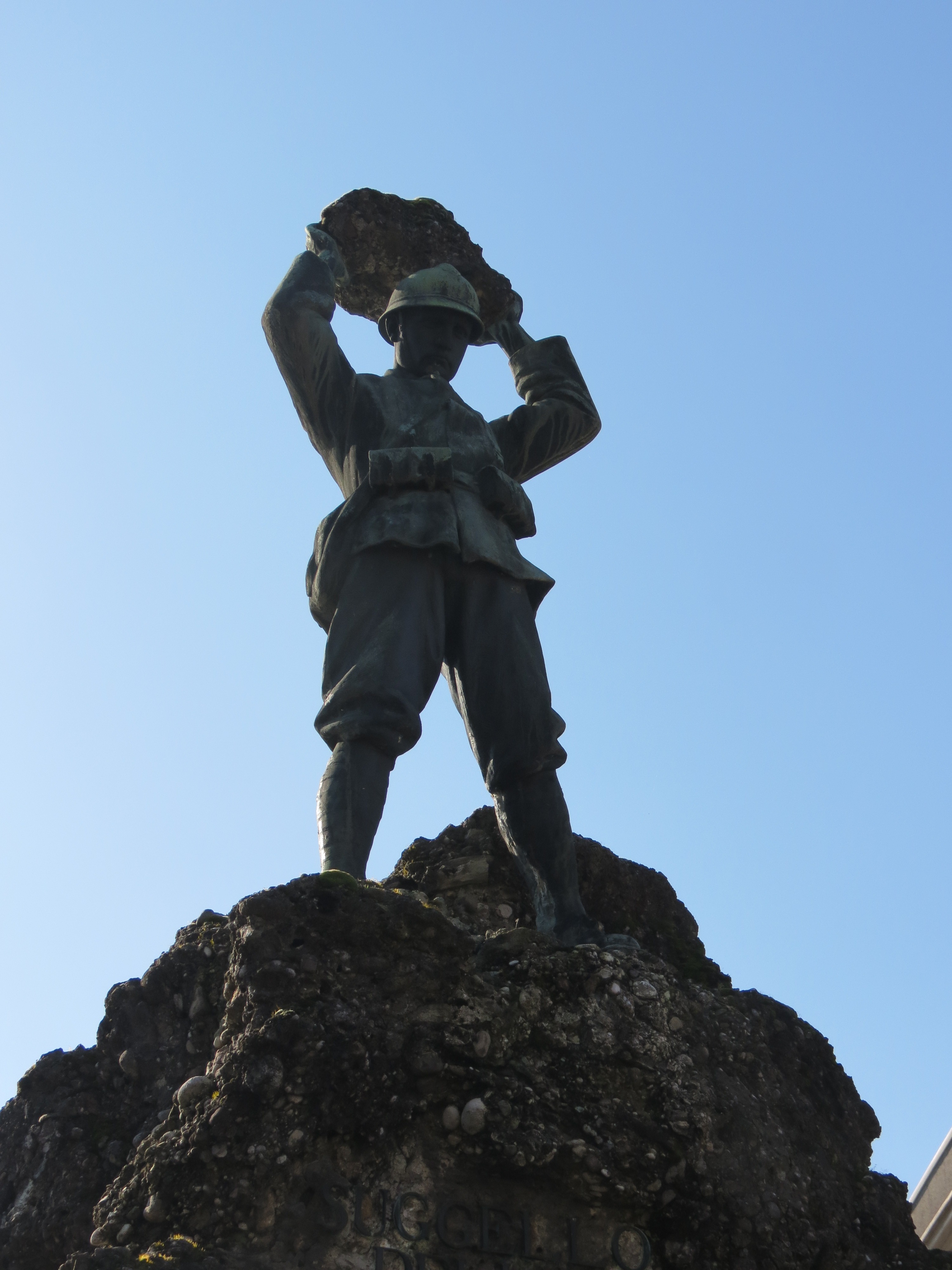 figura di soldato che scaglia una pietra contro l'aquila bicipite