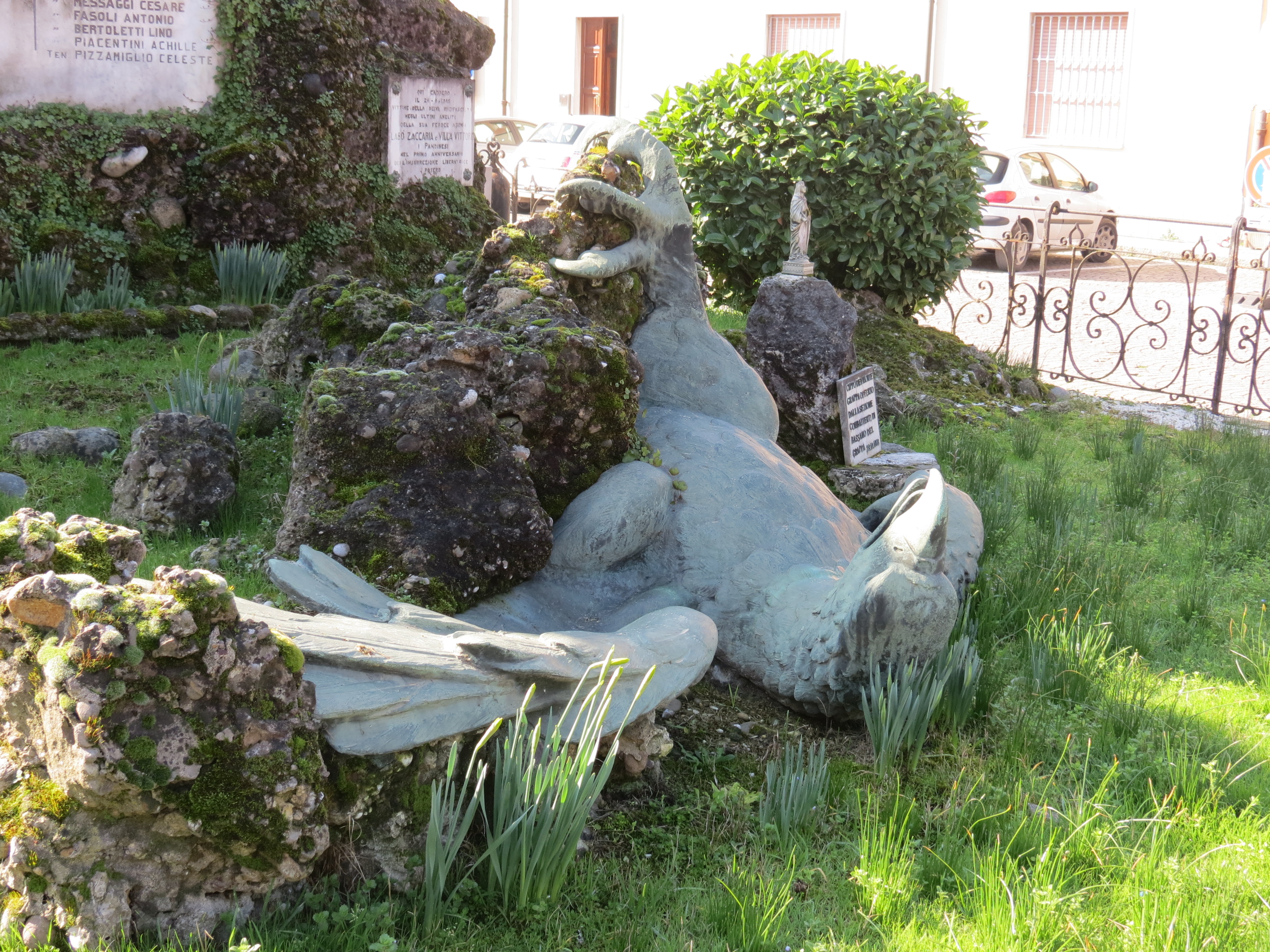 - ISCRIZIONI lato frontale della montagna, sotto la statua - SUGGELLO/ DELLA/ VITTORIA - a caratteri applicati -