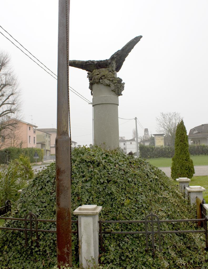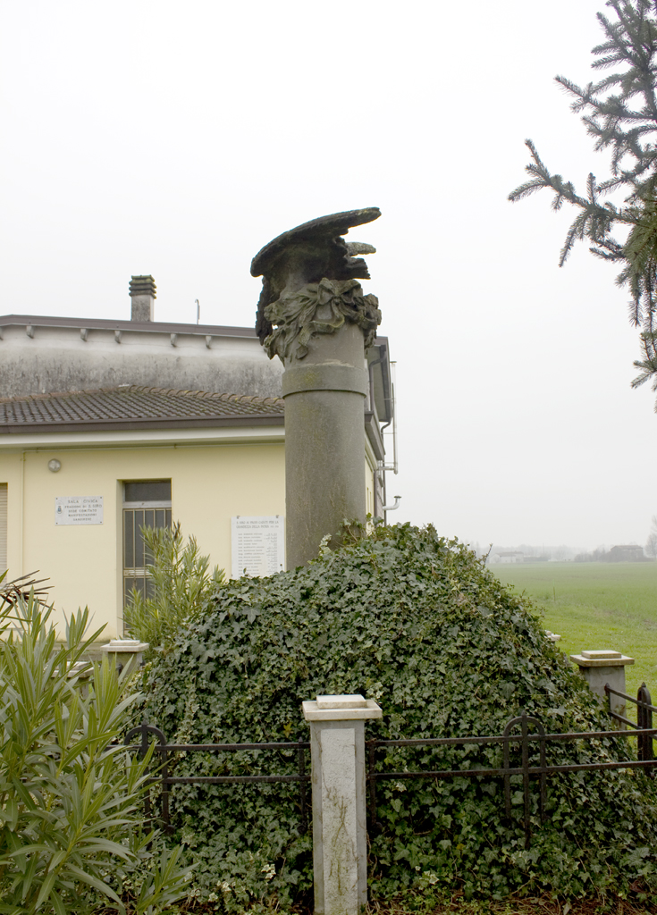 - NOTIZIE STORICO CRITICHE Il monumento ai caduti della Grande Guerra di San Siro, località del comune mantovano di San Benedetto Po, venne realizzato nel 1928 (notizia ricavata da un contributo pubblicato on-line dal comune, "Albo d'oro dei caduti sambenedettini", a cura di Ezio Fiori 2011). L'originaria scultura in bronzo dell'aquila venne commissionata all'artista Carlo Cerati (Casalmaggiore 1865/ Mantova 1948), già autore, l'anno precedente, del gruppo plastico del monumento cittadino di San Benedetto. Entrambe le opere di Cerati furono rifuse nel 1941 per necessità belliche. L'attuale scultura presente sulla colonna venne ricollocata nel secondo dopoguerra (autore ignoto), ugualmente alla lapide dedicata ai caduti dell'ultimo conflitto mondiale. Bibliografia: Monumenti ai mantovani caduti per la patria, Associazione nazionale combattenti e reduci. Federazione provinciale di Mantova, 2002, p. 147