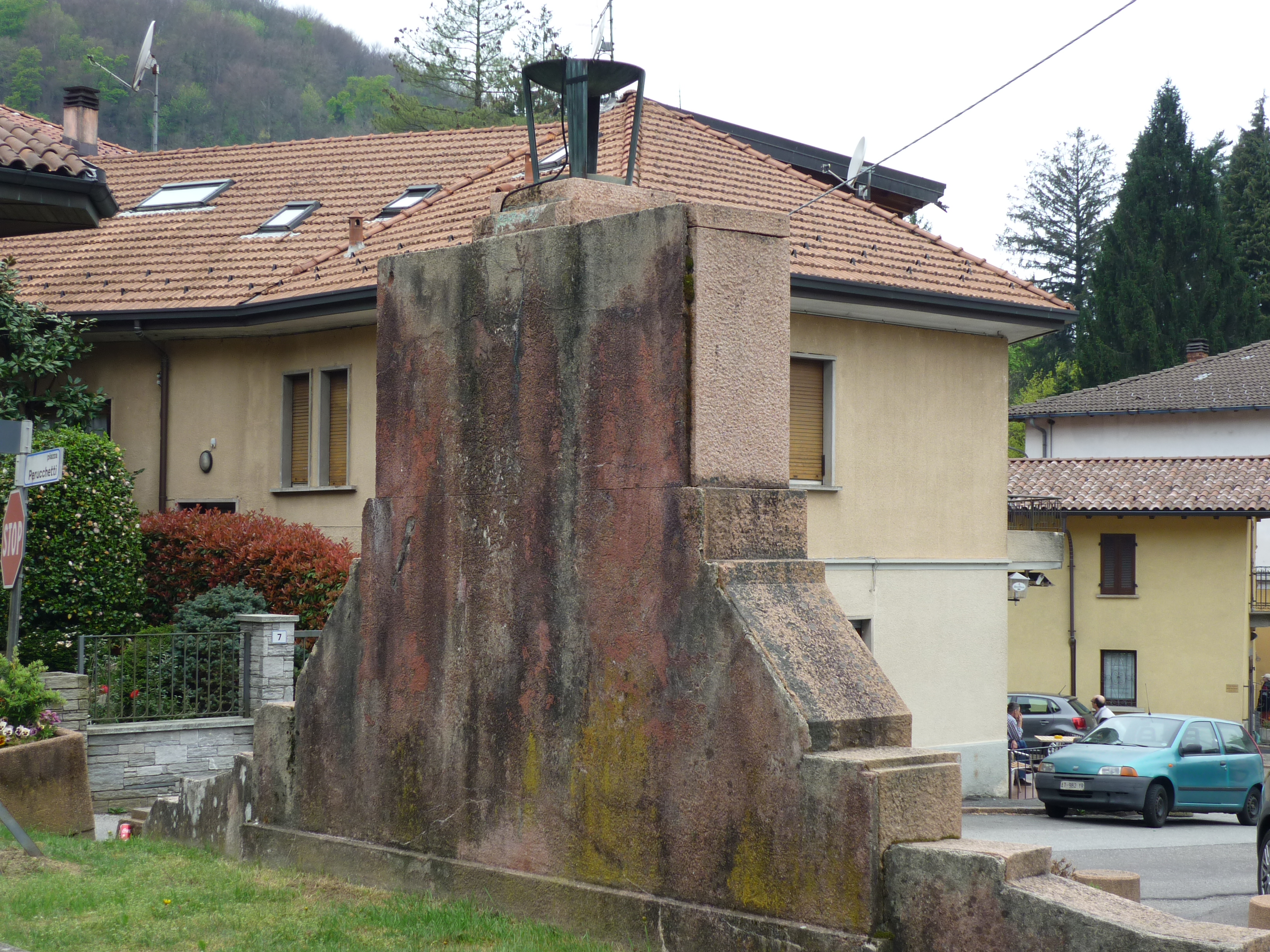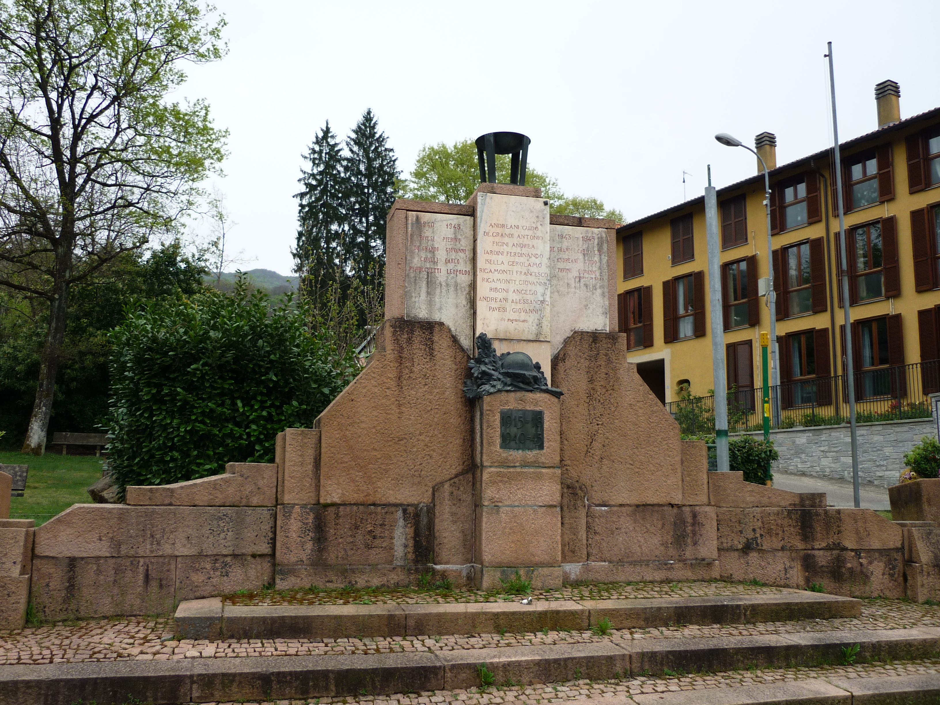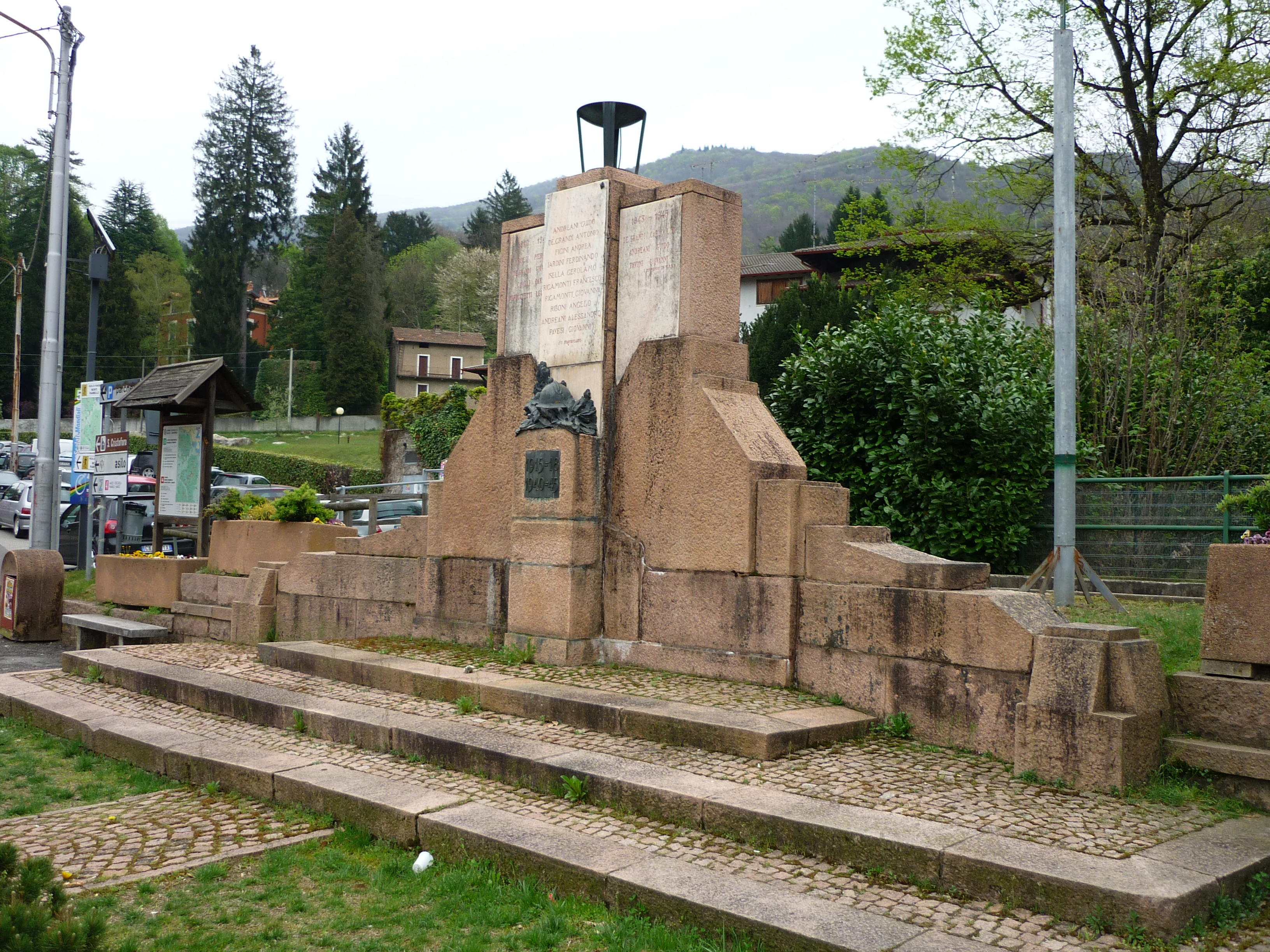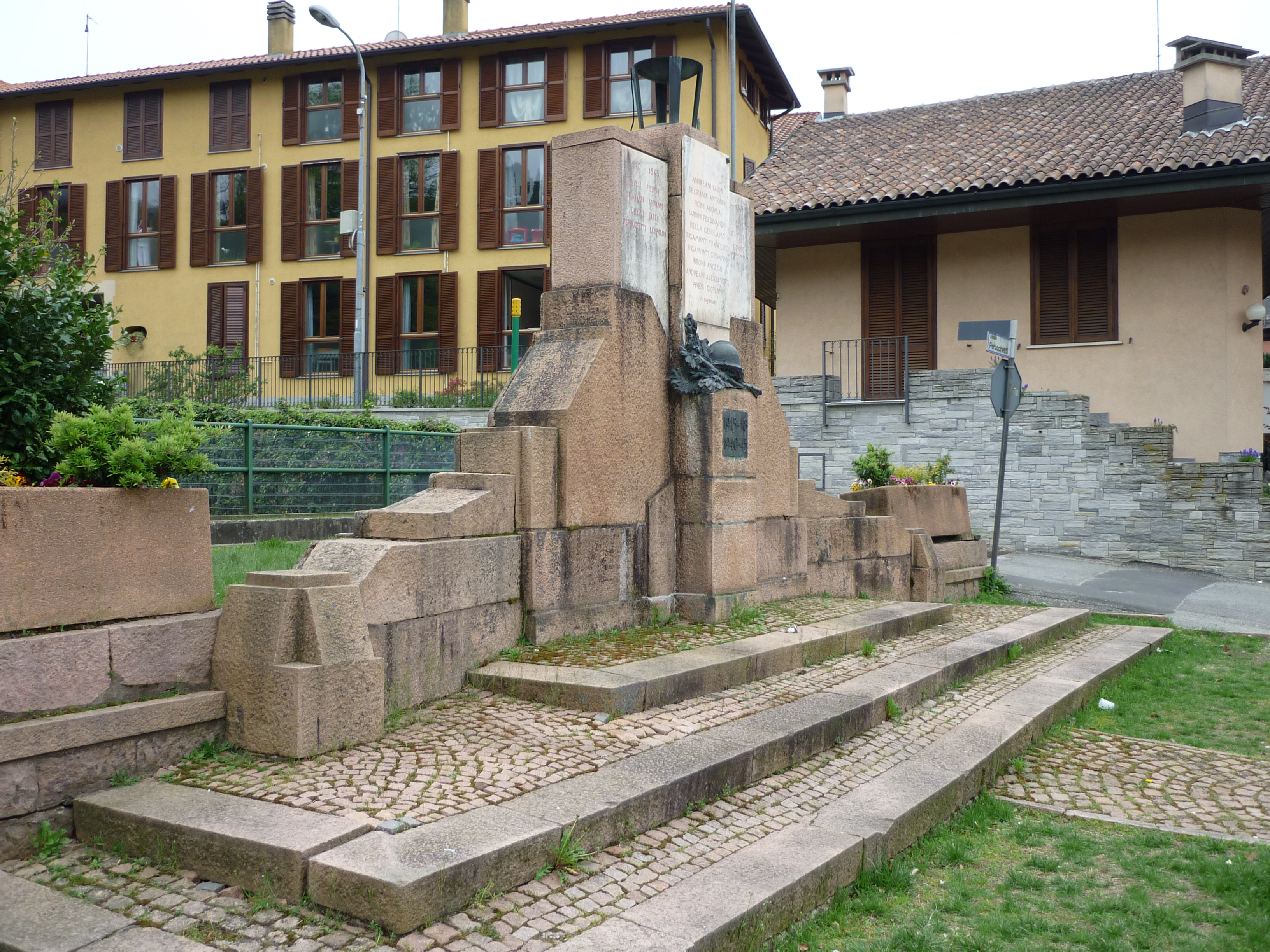 Monumento dedicato ai caduti della prima e della seconda guerra mondiale; compare la lista dei caduti. Predomina l’essenzialità della struttura, il geometrismo delle forme. Realizzato in porfido rosso di Cuasso al Monte