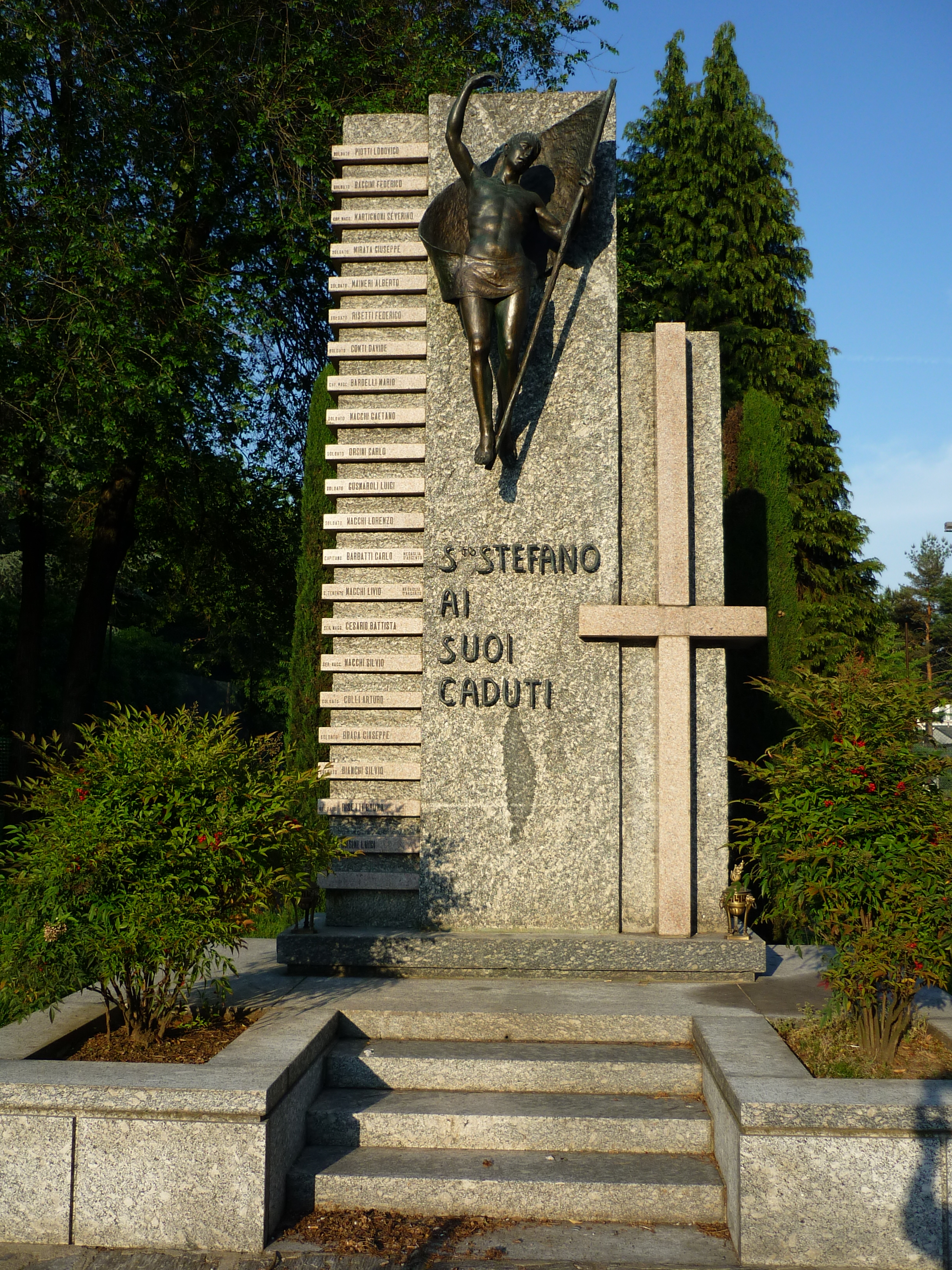- ISCRIZIONI lato anteriore - S.TO STEFANO/ AI/ SUOI/ CADUTI - capitale - a caratteri applicati -