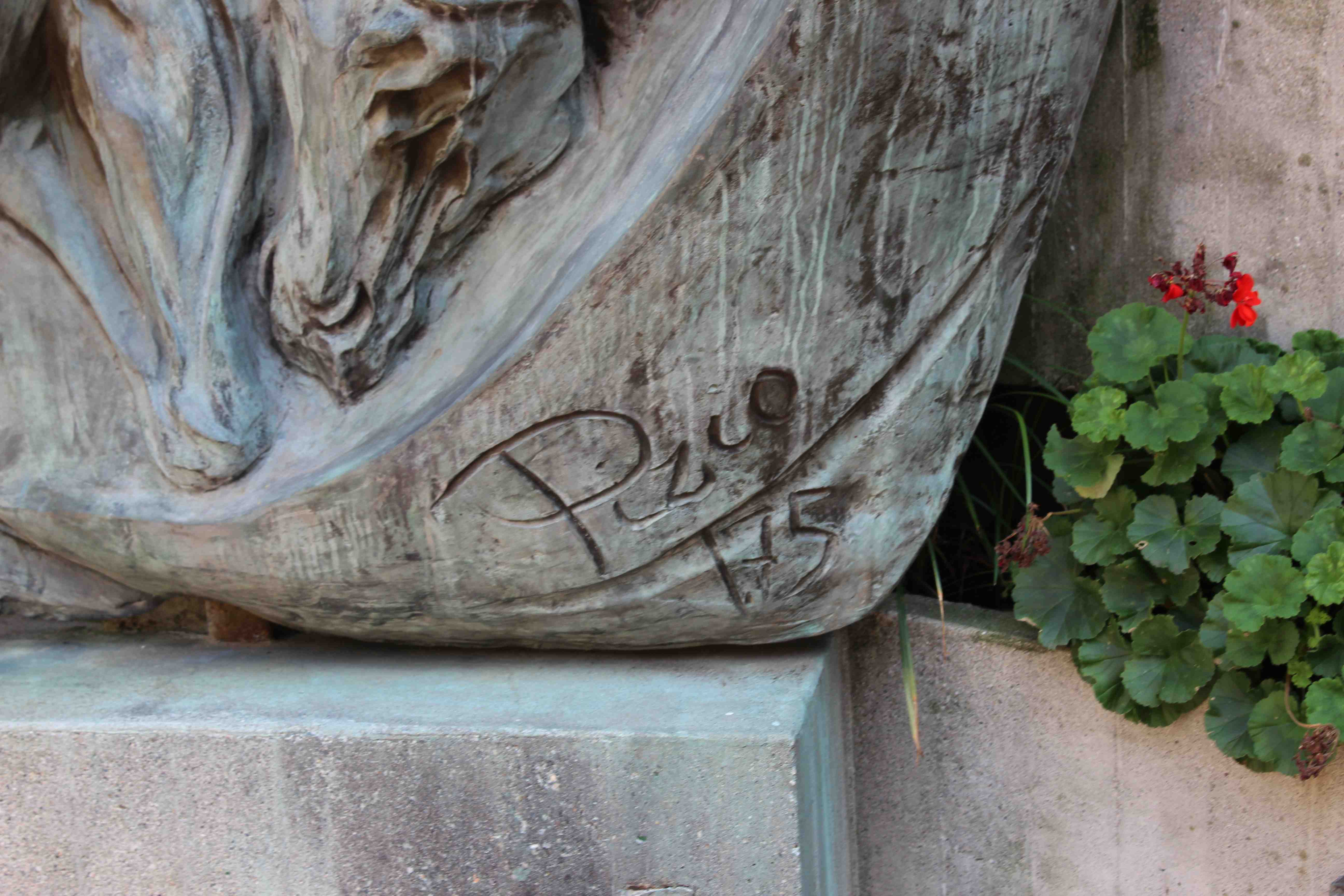 - ISCRIZIONI alla base del rilievo - PIZIO / 75 - capitale - a caratteri applicati in bronzo - italiano