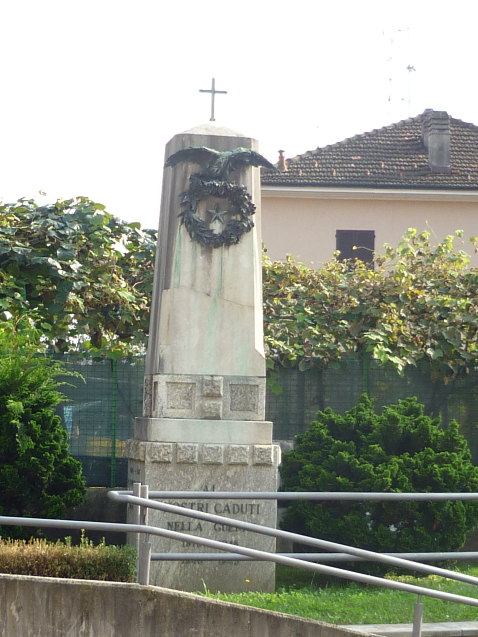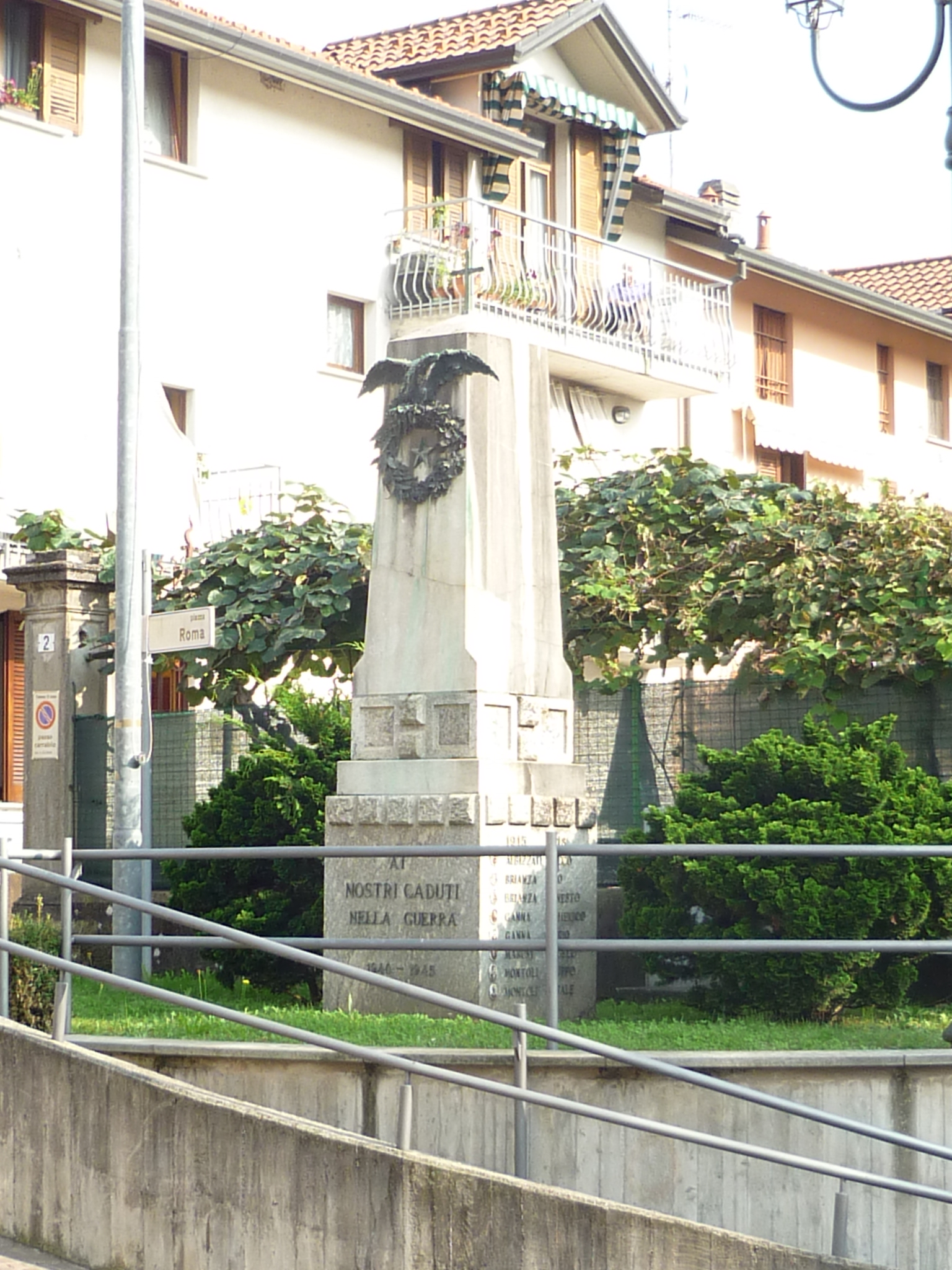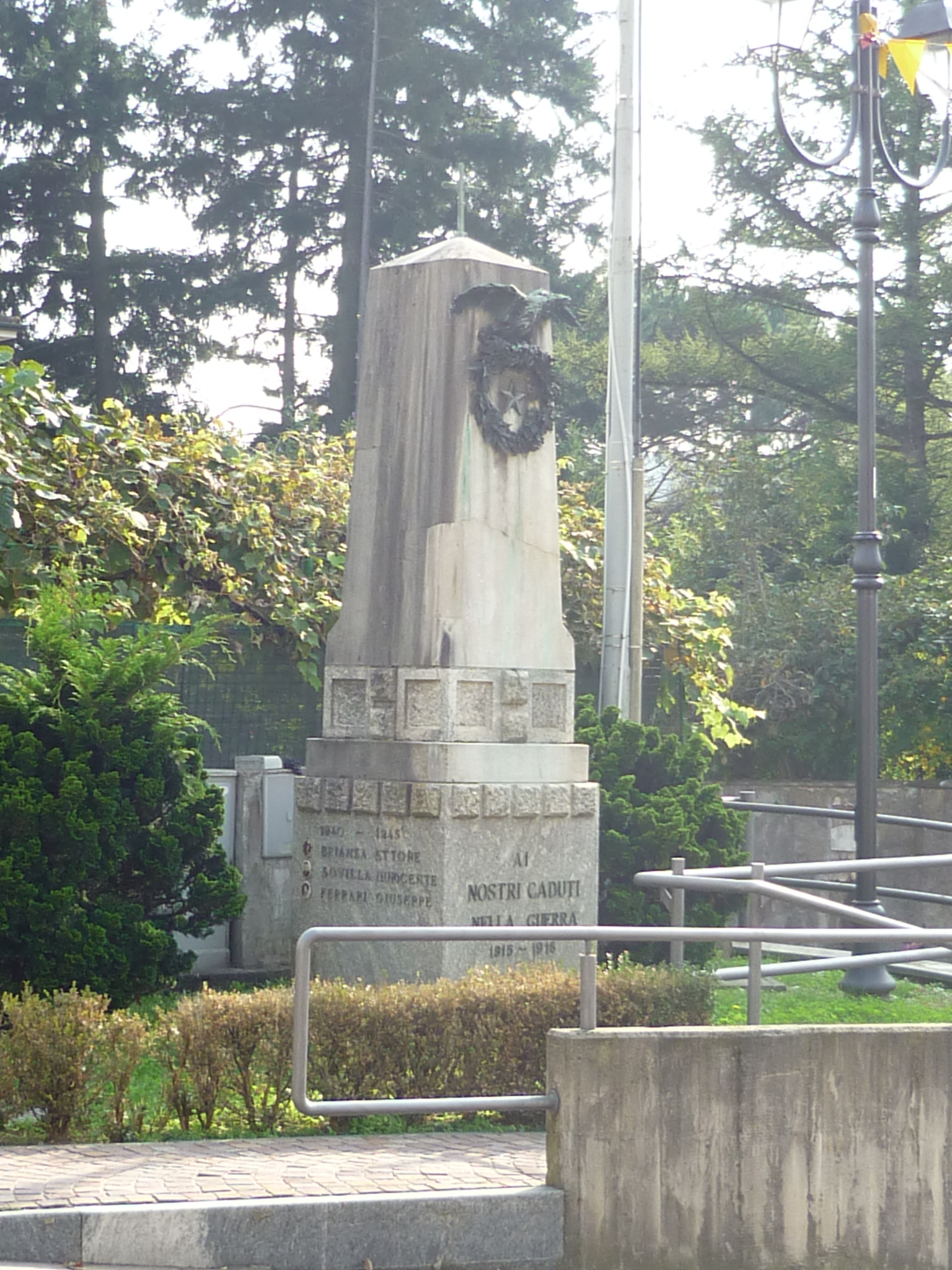 Monumento dedicato ai caduti della prima e della seconda guerra mondiale; compare la lista dei caduti. Il nome di ogni caduto è accompagnato dalla relativa fotografia. Sul lato anteriore dell’obelisco, nella parte superiore, compare l’aquila in bronzo ad ali spiegate poggiante su una corona di alloro, allegoria della Vittoria