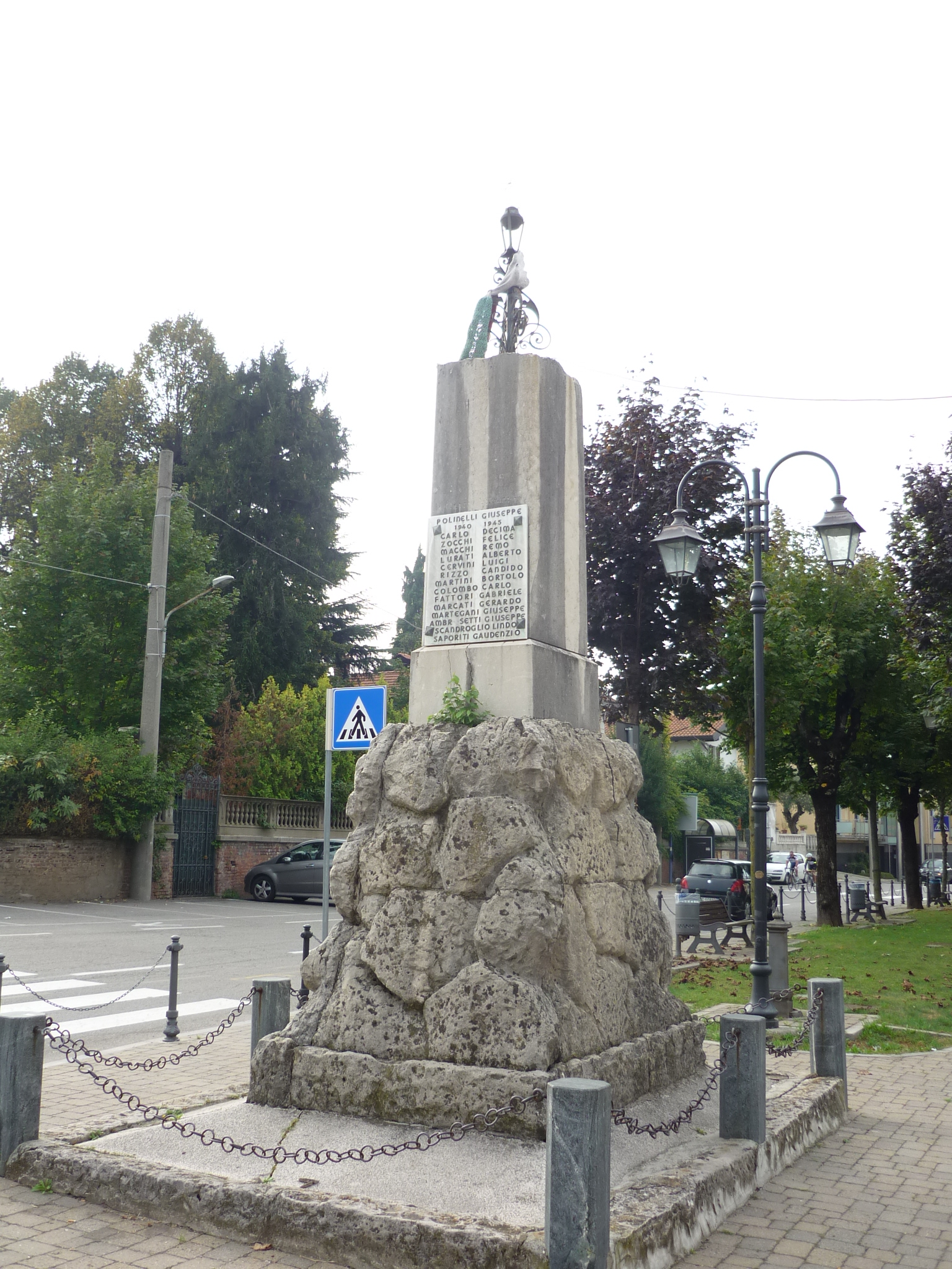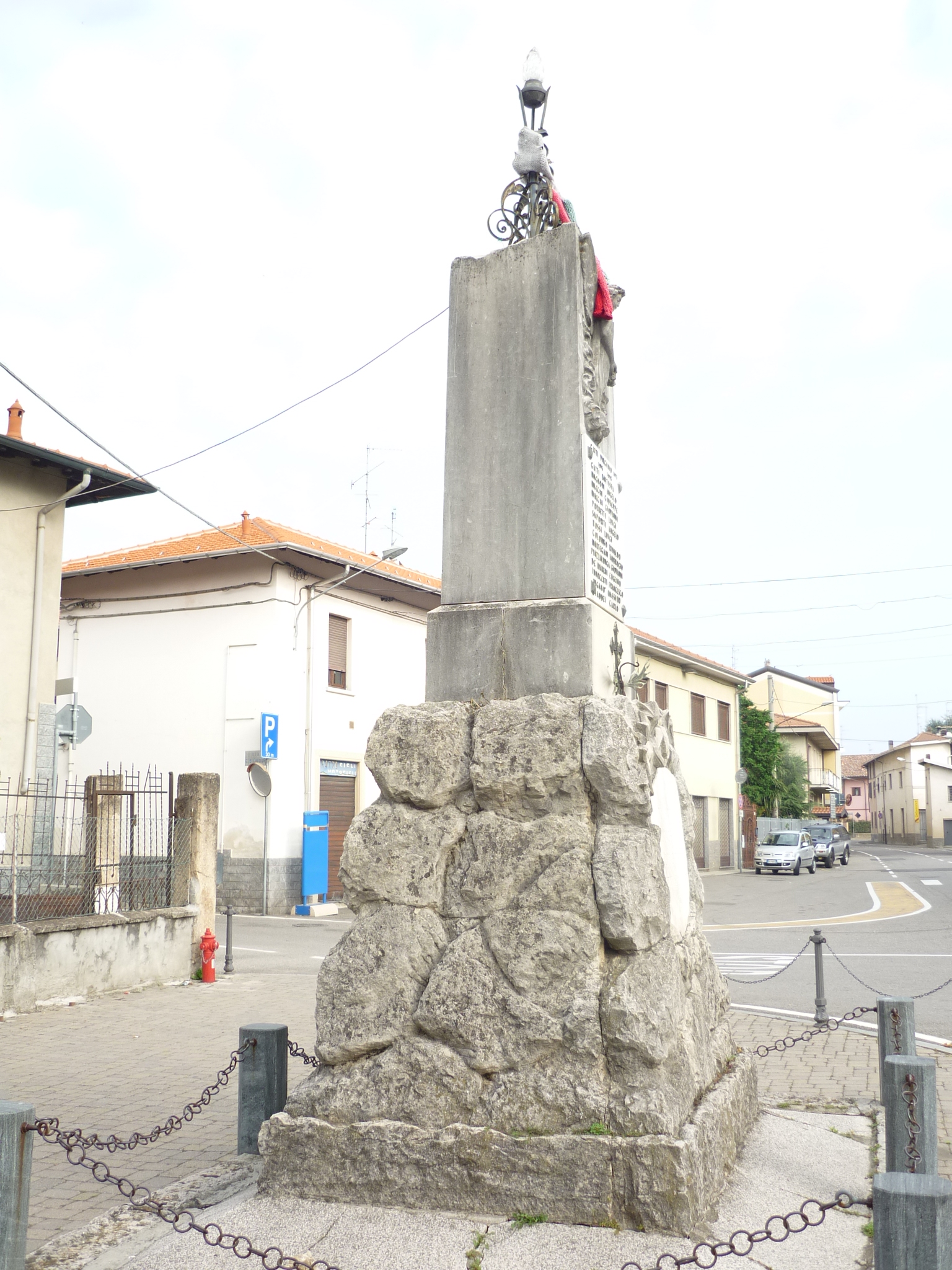 Monumento dedicato ai caduti della prima e della seconda guerra mondiale; compare la lista dei caduti. Sulla sommità del monumento è presente una lampada votiva; anteriormente, rilievo con la raffigurazione della Vittoria Alata che porta una corona di alloro. L’area del monumento ai caduti è delimitata da una serie di pilastrini collegati tra loro da catene in ferro