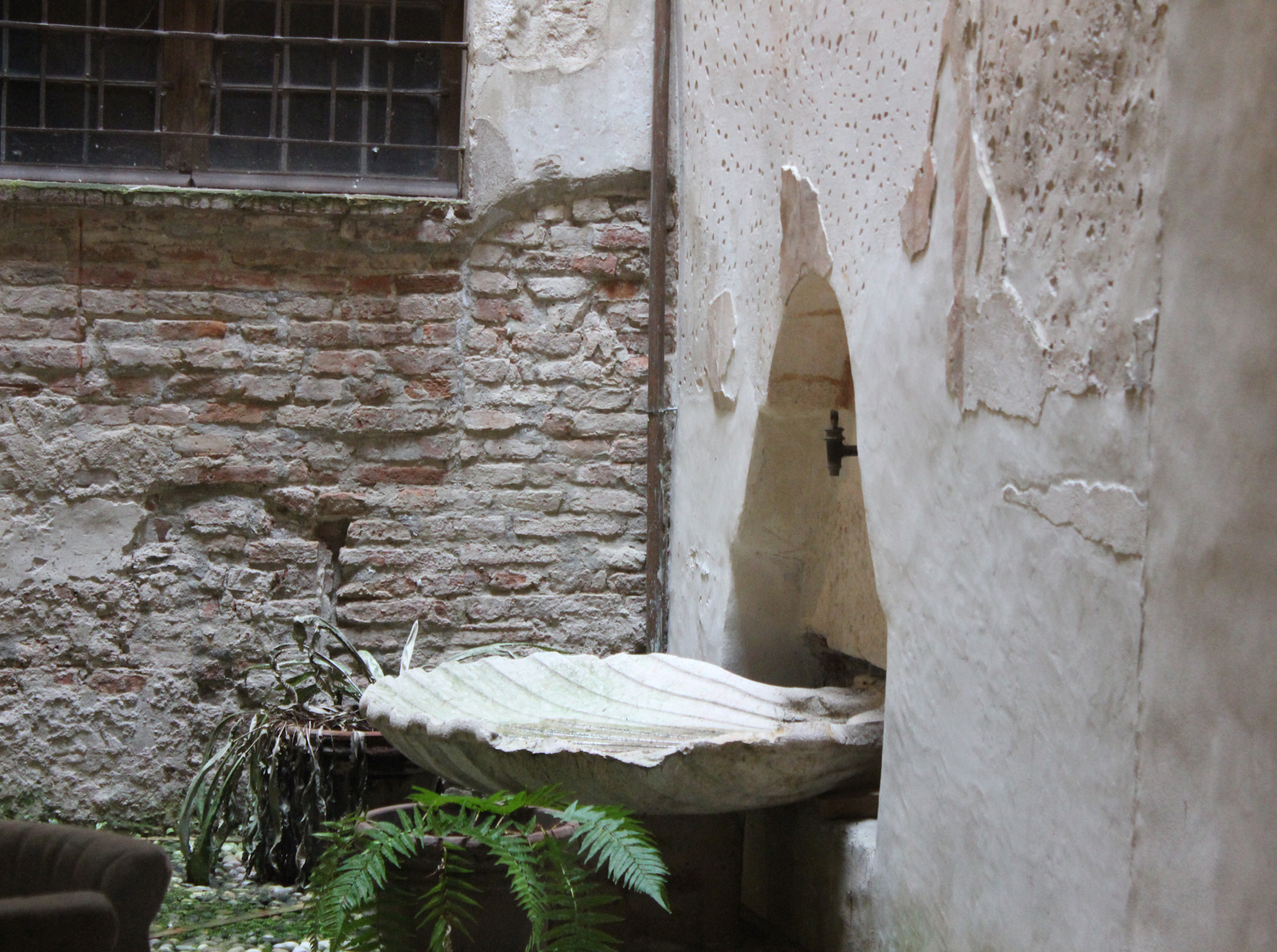 Il Viridarium presenta, murata nella parete settentrionale, una vasca lapidea a forma di grande conchiglia per convogliare l'acqua che fuoriusciva dal foro apposito. La valva riproduce abbastanza fedelmente il mollusco Pecten jacobaeus, volgarmente noto come cappasanta o conchiglia di San Giacomo; un sostegno cilindrico distanzia la vasca dal livello terreno