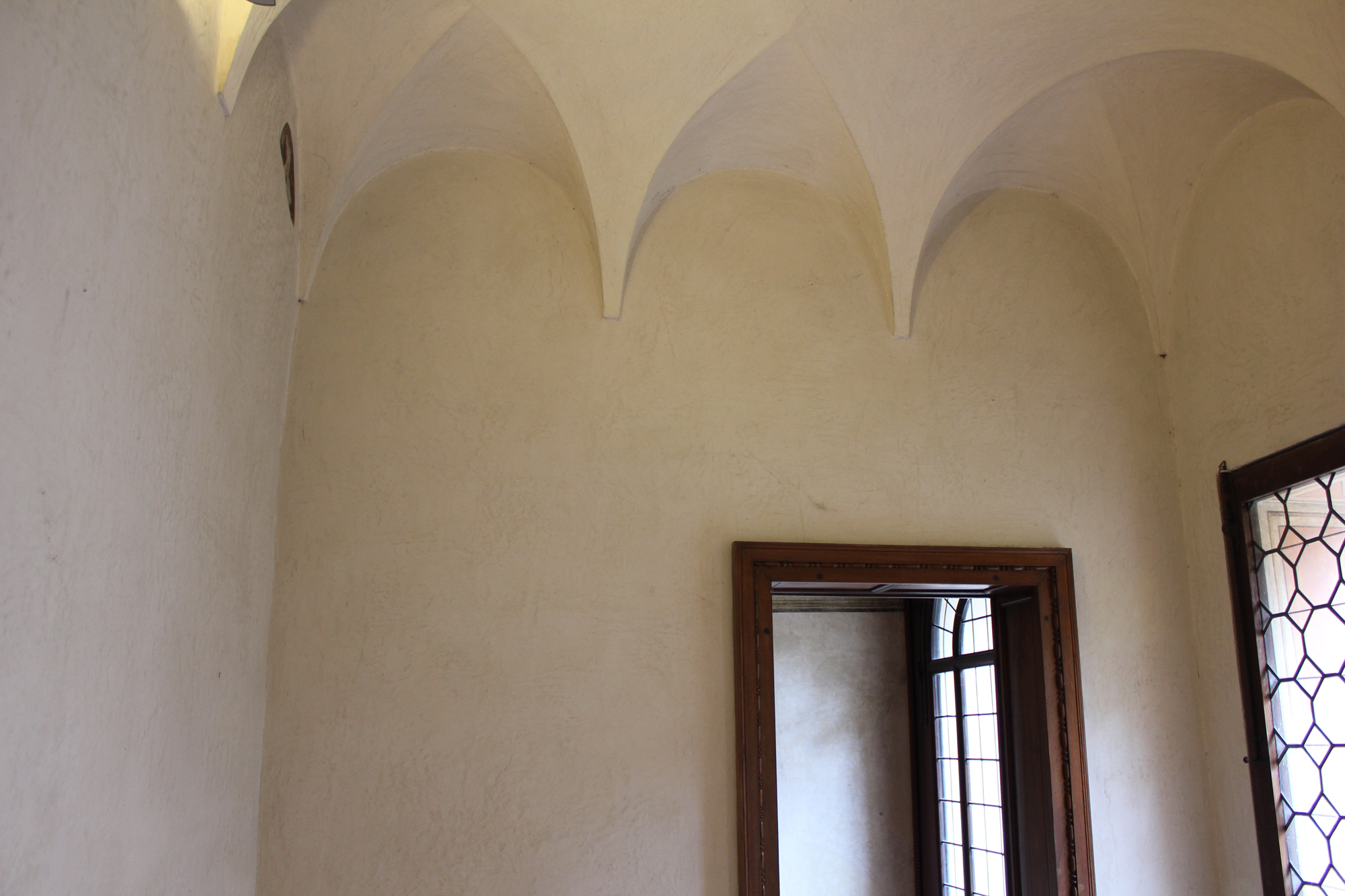 - NOTIZIE STORICO CRITICHE Isabella d’Este (1474-1539), consorte del quarto marchese di Mantova Francesco II (1466-1519), in seguito alle nozze celebrate nel febbraio del 1490, principiò la predisposizione di alcuni ambienti privati collocati attorno alla torre di sud-est del Castello di San Giorgio (Sala delle Armi), ancora identificabili nel piano nobile. Oltre all’organizzazione del noto Studiolo con la sottostante Grotta, disposti in allineamento verticale, l’estense volle allestire anche altri camerini i cui attuali accessi sono presso la Sala delle Armi (Camerino dei Nodi e delle Catenelle) e la Cappella di Castello (Camerino delle Fiamme). Due ulteriori ambienti ubicati al primo livello della fortezza sono certamente ascrivibili all’epoca della marchesa e del consorte: la torre di nord-ovest ospitava probabilmente la camera nuziale di Francesco e Isabella (Sala delle Sigle), mentre in quella di sud-ovest si trovava un grande locale voltato a crociera (A1, 30), modificato per larga parte dalla successiva realizzazione del sottostante Scalone di Enea. Alla morte del coniuge, avvenuta nel 1519, l’estense si trasferì presso la parte trecentesca di Palazzo Ducale, nell’ala sud-occidentale del pianterreno di Corte Vecchia, in ambienti che già avevano ospitato le consorti dei Gonzaga, quali Paola Malatesta prima e Barbara di Brandeburgo poi (forse in seguito anche Margherita di Wittelsbach). La scelta di Isabella di occupare due interi corpi di fabbrica, originariamente collegati e intersecati ad angolo retto attorno all’attuale Cortile d’Onore (già Cortile dei Quattro Platani con la perduta decorazione della Loggia delle Città), si intreccia probabilmente a concomitanti motivazioni: la comodità del piano terra oltre alla necessità di lasciare al figlio Federico II gli ambienti di Castello. La dimora vedovile - più ampia della precedente - era dunque composta dall’appartamento residenziale di rappresentanza posto nell’ala ovest di Santa Croce (dall’adiacente cappella palatina), cui spiccavano la Galleria e la Sala Imperiale, e dall’appartamento che ospitava la sua preziosa collezione di antichità e di pitture, ovvero l’ala meridionale di Grotta, con la Scalcheria, il ‘nuovo’ Studiolo e la ‘nuova’ Grotta, oltre alle delizie del Giardino Segreto (per un maggiore approfondimento degli ambienti ricordati, si rimanda alle relative schede di catalogo). Con il trasferimento presso Corte Vecchia, confermato già nell’ottobre del 1520 dal figlio Federico in una missiva ai prozii (Archivio di Stato di Mantova, Archivio Gonzaga, b. 2926, libro 262, cc. 97r-98r), Isabella fece spostare parte degli arredamenti dei due ambienti di Castello, Studiolo e Grotta, per riallestirli nel nuovo appartamento con il supplemento di integrazioni. Il destino di ‘migrazione’ dei due camerini non si concluse negli anni Venti del Cinquecento, ma si replicò ad oltre un secolo di distanza: dopo il sacco di Mantova del 1630, con il ritorno al potere del ramo cadetto dei Gonzaga, Carlo I Nevers volle, a conferma della linea di successione, trasportare nel suo Appartamento del Paradiso in Domus Nova, entrambi gli arredi. Se con i provvedimenti anti-aerei prescritti dopo Caporetto nel corso della Prima Guerra Mondiale, i cosiddetti ‘Gabinetti del Paradiso’ vennero smontati e trasferiti in Toscana (Gerola in Bollettino d’Arte, settembre-dicembre 1918), soltanto negli anni tra le due guerre ritornarono nell’ultima collocazione voluta da Isabella, nell’Appartamento di Grotta in Corte Vecchia. La residenza vedovile di Isabella d’Este, ben più ambiziosa della precedente in Castello, venne installata in una serie di ambienti di origine medievale (presumibilmente della seconda metà del Trecento e destinati a divenire sin da subito “sedi privilegiate di appartamenti di esclusivo utilizzo privato” grazie alla loro posizione defilata, Rodella in Algeri 2003), prevedendo diversi interventi strutturali coordinati dall’architetto Giovan Battista Covo. Gli apparati decorativi vennero piuttosto affidati in buona parte all’artista mantovano Lorenzo Leonbruno, il cui capolavoro è certamente la Sala della Scalcheria. Rispetto al piano nobile del Castello, nel quartiere di Corte Vecchia la marchesa poté usufruire di diversi spazi all’aperto come il Viridario con impluvium (nell’ala di Santa Croce), il Cortile di rappresentanza con la Loggia delle Città ed il Giardino Segreto, a carattere privato. L’ala vedovile di Grotta comprende l’intero prospetto sud del Cortile d’Onore, articolato dapprima nella grande sala della Scalcheria, passaggio d’obbligo verso la zona più riposta dei camerini di Studiolo e di Grotta, cui seguono due piccoli locali, conclusi dal Giardino Segreto. [SI PROSEGUE IN OSS - Osservazioni]