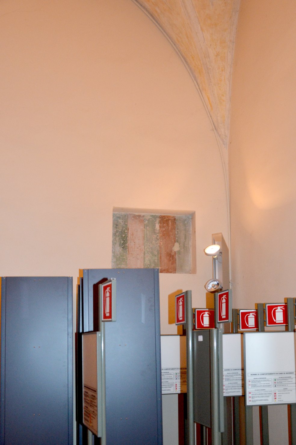 - NOTIZIE STORICO CRITICHE Con la nota rifunzionalizzazione del Castello di San Giorgio voluta da Ludovico II Gonzaga - da complesso fortificato di natura difensiva a residenza marchionale centro di corte - l’edificio bartoliniano fu teatro di un vasto cantiere che vide gli interventi dell’architetto fiorentino Luca Fancelli e del maestro padovano Andrea Mantegna. Sebbene lasciato per lo più in disparte negli anni di Federico I (che ebbe comunque diversi studioli in castello), per via dell’impegno profuso nell’edificazione della vicina Domus Nova affacciata sul Lago Inferiore, il castello fu nuovamente interessato da ulteriori trasformazioni durante il periodo in cui fu al potere Francesco II (dal 1484 sino alla scomparsa nel 1519), consorte di Isabella d’Este. Il Gonzaga stabilì le proprie stanze al piano terra del maniero, proprio al di sotto del celebre appartamento coniugale della marchesa, ospitato, con Camerino e Grotta, al piano nobile. Benché edificato a scopo difensivo, alcuni elementi architettonici originari del complesso tardo trecentesco presentano una certa consonanza con le residenze signorili coeve (L’Occaso-Rodella 2006, p. 23), come le eleganti bifore dei torrioni angolari, in parte comprese nell’alloggio dello stesso Francesco II (numerose bifore furono ripristinate nel Novecento sull’esempio delle uniche originali conservatesi al pianterreno della torre di nord-ovest, ovvero nella Stanza della Museruola). Alla morte del marchese successe il figlio Federico II che andò ad occupare le stanze paterne del pianterreno installandovi diversi ambienti, fra i quali una stanza da letto e il cosiddetto Studio delle Antichità; ben poche tracce rimangono del passaggio di quello che sarà il primo duca di Mantova proprio durante il quinquennio in cui si avvalse dell’opera del pittore Lorenzo Leonbruno, prima dell’arrivo a corte del Pippi (Brown 1988 indica nelle ali est e nord l’ubicazione dall’appartamento di Federico, mentre Algeri 2003 e L’Occaso-Rodella 2006 individuano nel corpo di fabbrica sud del castello gli ambienti utilizzati dal Gonzaga in continuità con il revellino di San Niccolò). Anche se in seguito il piano terra del castello fu ampiamente rimaneggiato - si ricorda su tutti l’intervento asburgico con la destinazione a sede d’archivio - è la veste novecentesca dei restauri diretti da Clinio Cottafavi a restituirci l’immagine attuale della residenza marchionale dei due Gonzaga. Per la sistemazione della civica raccolta lapidaria, a partire dal 1923, si intervenne col recupero degli spazi al pianterreno, ricordati come “abbandonati, senza imposte e vetri, aperti alle intemperie e agli animali notturni, ridotti ormai a veri e propri immondezzai” (Cottafavi 1931, p. 522): si ispezionarono le pareti alla ricerca di tracce decorative conservatesi al di sotto dello scialbo asburgico, come pure si ricostruirono i muri divisori interni eliminati in gran parte nel Settecento - “recuperando l’antica divisione degli originali ambienti in piccoli gabinetti o camerini” - e ancora si ripristinarono le finestre e le porte di collegamento tra le stanze. Così nei quattro locali dell’ala orientale fu ricavato l’appartamento per il custode, mentre i lati nord ed ovest vennero destinati a sede delle collezioni municipali. Attualmente l’appartamento marchionale del pianterreno, ancora individuabile negli ambienti attorno alle torri di nord-ovest (Stanza della Museruola), di nord-est (Stanza del Sole) e di sud-est (Stanza dei Tronchetti), è utilizzato per le esposizioni temporanee del Museo di Palazzo Ducale. Le stanze dei marchesi erano organizzate attorno al perno centrale del cortile compreso fra le due ali fancelliane (completate nel 1472) e l’unico lato del loggiato originario conservatosi a settentrione. Nella realizzazione degli apparati decorativi le maestranze che lavorarono al servizio di Francesco II privilegiarono una stretta prossimità con il repertorio ornamentale di cifra mantegnesca, spesso traendo ispirazione dai moduli decorativi della Camera Picta (L’Occaso-Rodella 2006, p. 30). Nell’ala nord furono inoltre recuperati diversi lacerti pittorici riconducibili alle fasi iniziali di costruzione del castello: motivi araldici a bande alternate bianche, rosse e verdi - le tinte gonzaghesche - peraltro rintracciabili anche nel piano nobile dell’edificio presso la doppia rampa che dalla Sala delle Cappe conduce salendo nello Studiolo della marchesa Isabella e discendendo presso la Grotta sottostante (si vedano le schede OA riferite ai due ambienti: NCT 0303267404-0 e 0303267405-0). La collocazione delle quattro mostre di portali presso l’ala settentrionale avvenne probabilmente negli anni Venti del Novecento in occasione della risistemazione dei muri interni di divisione degli ambienti: diverse tramezze furono infatti ripristinate come dovevano presentarsi prima degli abbattimenti operati dagli Asburgo. [SI PROSEGUE IN OSS - Osservazioni]