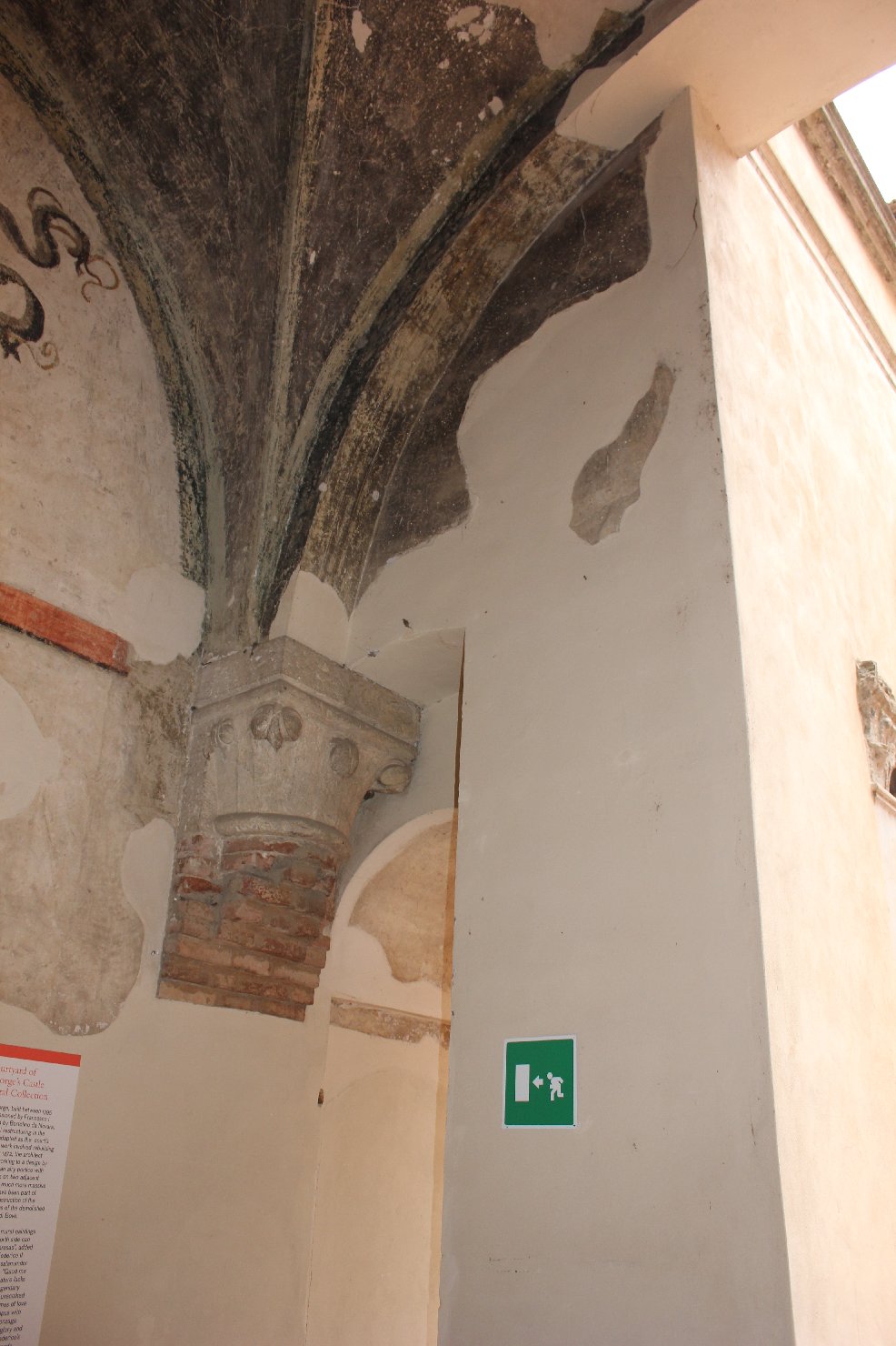 - NOTIZIE STORICO CRITICHE Con la nota rifunzionalizzazione del Castello di San Giorgio voluta da Ludovico II Gonzaga - da complesso fortificato di natura difensiva a residenza marchionale centro di corte - l’edificio bartoliniano fu teatro di un vasto cantiere che vide gli interventi dell’architetto fiorentino Luca Fancelli e del maestro padovano Andrea Mantegna. Sebbene lasciato per lo più in disparte negli anni di Federico I (che ebbe comunque diversi studioli in castello), per via dell’impegno profuso nell’edificazione della vicina Domus Nova affacciata sul Lago Inferiore, il castello fu nuovamente interessato da ulteriori trasformazioni durante il periodo in cui fu al potere Francesco II (dal 1484 sino alla scomparsa nel 1519), consorte di Isabella d’Este. Il Gonzaga stabilì le proprie stanze al piano terra del maniero, proprio al di sotto del celebre appartamento coniugale della marchesa, ospitato, con Camerino e Grotta, al piano nobile. Benché edificato a scopo difensivo, alcuni elementi architettonici originari del complesso tardo trecentesco presentano una certa consonanza con le residenze signorili coeve (L’Occaso-Rodella 2006, p. 23), come le eleganti bifore dei torrioni angolari, in parte comprese nell’alloggio dello stesso Francesco II (numerose bifore furono ripristinate nel Novecento sull’esempio delle uniche originali conservatesi al pianterreno della torre di nord-ovest, ovvero nella Stanza della Museruola). Alla morte del marchese successe il figlio Federico II che andò ad occupare le stanze paterne del pianterreno installandovi diversi ambienti, fra i quali una stanza da letto e il cosiddetto Studio delle Antichità; ben poche tracce rimangono del passaggio di quello che sarà il primo duca di Mantova proprio durante il quinquennio in cui si avvalse dell’opera del pittore Lorenzo Leonbruno, prima dell’arrivo a corte del Pippi (Brown 1988 indica nelle ali est e nord l’ubicazione dall’appartamento di Federico, mentre Algeri 2003 e L’Occaso-Rodella 2006 individuano nel corpo di fabbrica sud del castello gli ambienti utilizzati dal Gonzaga in continuità con il revellino di San Niccolò). Anche se in seguito il piano terra del castello fu ampiamente rimaneggiato - si ricorda su tutti l’intervento asburgico con la destinazione a sede d’archivio - è la veste novecentesca dei restauri diretti da Clinio Cottafavi a restituirci l’immagine attuale della residenza marchionale dei due Gonzaga. Per la sistemazione della civica raccolta lapidaria, a partire dal 1923, si intervenne col recupero degli spazi al pianterreno, ricordati come “abbandonati, senza imposte e vetri, aperti alle intemperie e agli animali notturni, ridotti ormai a veri e propri immondezzai” (Cottafavi 1931, p. 522): si ispezionarono le pareti alla ricerca di tracce decorative conservatesi al di sotto dello scialbo asburgico, come pure si ricostruirono i muri divisori interni eliminati in gran parte nel Settecento - “recuperando l’antica divisione degli originali ambienti in piccoli gabinetti o camerini” - e ancora si ripristinarono le finestre e le porte di collegamento tra le stanze. Così nei quattro locali dell’ala orientale fu ricavato l’appartamento per il custode, mentre i lati nord ed ovest vennero destinati a sede delle collezioni municipali. Attualmente l’appartamento marchionale del pianterreno, ancora individuabile negli ambienti attorno alle torri di nord-ovest (Stanza della Museruola), di nord-est (Stanza del Sole) e di sud-est (Stanza dei Tronchetti), è utilizzato per le esposizioni temporanee del Museo di Palazzo Ducale. Le stanze dei marchesi erano organizzate attorno al perno centrale del cortile compreso fra le due ali fancelliane (completate nel 1472) e l’unico lato del loggiato originario conservatosi a settentrione. Nella realizzazione degli apparati decorativi le maestranze che lavorarono al servizio di Francesco II privilegiarono una stretta prossimità con il repertorio ornamentale di cifra mantegnesca, spesso traendo ispirazione dai moduli decorativi della Camera Picta (L’Occaso-Rodella 2006, p. 30). Nell’ala nord furono inoltre recuperati diversi lacerti pittorici riconducibili alle fasi iniziali di costruzione del castello: motivi araldici a bande alternate bianche, rosse e verdi - le tinte gonzaghesche - peraltro rintracciabili anche nel piano nobile dell’edificio presso la doppia rampa che dalla Sala delle Cappe conduce salendo nello Studiolo della marchesa Isabella e discendendo presso la Grotta sottostante (si vedano le schede OA riferite ai due ambienti: NCT 0303267404-0 e 0303267405-0). La collocazione delle quattro mostre di portali presso l’ala settentrionale avvenne probabilmente negli anni Venti del Novecento in occasione della risistemazione dei muri interni di divisione degli ambienti: diverse tramezze furono infatti ripristinate come dovevano presentarsi prima degli abbattimenti operati dagli Asburgo. [SI PROSEGUE IN OSS - Osservazioni]