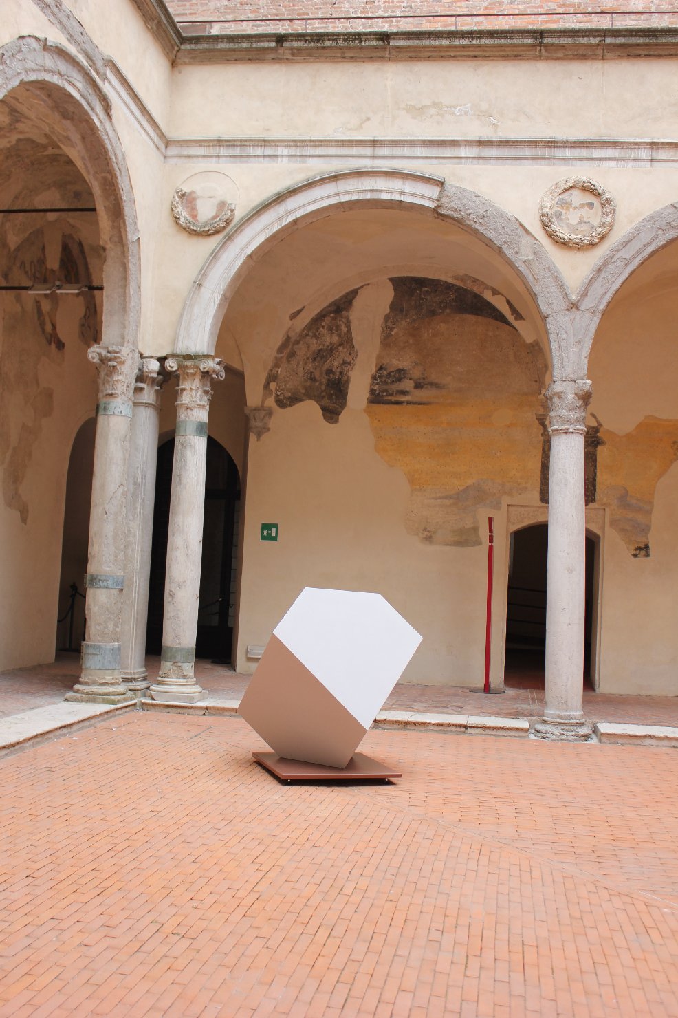 - NOTIZIE STORICO CRITICHE Con la nota rifunzionalizzazione del Castello di San Giorgio voluta da Ludovico II Gonzaga - da complesso fortificato di natura difensiva a residenza marchionale centro di corte - l’edificio bartoliniano fu teatro di un vasto cantiere che vide gli interventi dell’architetto fiorentino Luca Fancelli e del maestro padovano Andrea Mantegna. Sebbene lasciato per lo più in disparte negli anni di Federico I (che ebbe comunque diversi studioli in castello), per via dell’impegno profuso nell’edificazione della vicina Domus Nova affacciata sul Lago Inferiore, il castello fu nuovamente interessato da ulteriori trasformazioni durante il periodo in cui fu al potere Francesco II (dal 1484 sino alla scomparsa nel 1519), consorte di Isabella d’Este. Il Gonzaga stabilì le proprie stanze al piano terra del maniero, proprio al di sotto del celebre appartamento coniugale della marchesa, ospitato, con Camerino e Grotta, al piano nobile. Benché edificato a scopo difensivo, alcuni elementi architettonici originari del complesso tardo trecentesco presentano una certa consonanza con le residenze signorili coeve (L’Occaso-Rodella 2006, p. 23), come le eleganti bifore dei torrioni angolari, in parte comprese nell’alloggio dello stesso Francesco II (numerose bifore furono ripristinate nel Novecento sull’esempio delle uniche originali conservatesi al pianterreno della torre di nord-ovest, ovvero nella Stanza della Museruola). Alla morte del marchese successe il figlio Federico II che andò ad occupare le stanze paterne del pianterreno installandovi diversi ambienti, fra i quali una stanza da letto e il cosiddetto Studio delle Antichità; ben poche tracce rimangono del passaggio di quello che sarà il primo duca di Mantova proprio durante il quinquennio in cui si avvalse dell’opera del pittore Lorenzo Leonbruno, prima dell’arrivo a corte del Pippi (Brown 1988 indica nelle ali est e nord l’ubicazione dall’appartamento di Federico, mentre Algeri 2003 e L’Occaso-Rodella 2006 individuano nel corpo di fabbrica sud del castello gli ambienti utilizzati dal Gonzaga in continuità con il revellino di San Niccolò). Anche se in seguito il piano terra del castello fu ampiamente rimaneggiato - si ricorda su tutti l’intervento asburgico con la destinazione a sede d’archivio - è la veste novecentesca dei restauri diretti da Clinio Cottafavi a restituirci l’immagine attuale della residenza marchionale dei due Gonzaga. Per la sistemazione della civica raccolta lapidaria, a partire dal 1923, si intervenne col recupero degli spazi al pianterreno, ricordati come “abbandonati, senza imposte e vetri, aperti alle intemperie e agli animali notturni, ridotti ormai a veri e propri immondezzai” (Cottafavi 1931, p. 522): si ispezionarono le pareti alla ricerca di tracce decorative conservatesi al di sotto dello scialbo asburgico, come pure si ricostruirono i muri divisori interni eliminati in gran parte nel Settecento - “recuperando l’antica divisione degli originali ambienti in piccoli gabinetti o camerini” - e ancora si ripristinarono le finestre e le porte di collegamento tra le stanze. Così nei quattro locali dell’ala orientale fu ricavato l’appartamento per il custode, mentre i lati nord ed ovest vennero destinati a sede delle collezioni municipali. Attualmente l’appartamento marchionale del pianterreno, ancora individuabile negli ambienti attorno alle torri di nord-ovest (Stanza della Museruola), di nord-est (Stanza del Sole) e di sud-est (Stanza dei Tronchetti), è utilizzato per le esposizioni temporanee del Museo di Palazzo Ducale. Le stanze dei marchesi erano organizzate attorno al perno centrale del cortile compreso fra le due ali fancelliane (completate nel 1472) e l’unico lato del loggiato originario conservatosi a settentrione. Nella realizzazione degli apparati decorativi le maestranze che lavorarono al servizio di Francesco II privilegiarono una stretta prossimità con il repertorio ornamentale di cifra mantegnesca, spesso traendo ispirazione dai moduli decorativi della Camera Picta (L’Occaso-Rodella 2006, p. 30). Nell’ala nord furono inoltre recuperati diversi lacerti pittorici riconducibili alle fasi iniziali di costruzione del castello: motivi araldici a bande alternate bianche, rosse e verdi - le tinte gonzaghesche - peraltro rintracciabili anche nel piano nobile dell’edificio presso la doppia rampa che dalla Sala delle Cappe conduce salendo nello Studiolo della marchesa Isabella e discendendo presso la Grotta sottostante (si vedano le schede OA riferite ai due ambienti: NCT 0303267404-0 e 0303267405-0). La collocazione delle quattro mostre di portali presso l’ala settentrionale avvenne probabilmente negli anni Venti del Novecento in occasione della risistemazione dei muri interni di divisione degli ambienti: diverse tramezze furono infatti ripristinate come dovevano presentarsi prima degli abbattimenti operati dagli Asburgo. [SI PROSEGUE IN OSS - Osservazioni]