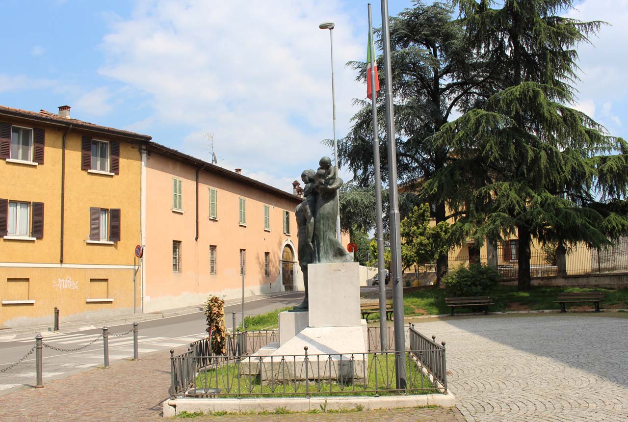 - NOTIZIE STORICO CRITICHE Nel 1920 il Comune di Castenedolo decise di innalzare un edificio scolastico come monumento ai caduti. Qualche anno dopo venne completato l’omaggio ai caduti erigendo nella pizzetta antistante le scuole un monumento scultoreo. Il 9 luglio 1924 una giuria incaricata dal Comitato per l’erezione del monumento ai caduti di Castenedolo scelse tra vari bozzetti quello proposto dallo scultore Claudio Botta intitolato “La Riconoscenza”. Il monumento venne inaugurato il 9 novembre 1924. Allo scoppio del secondo conflitto mondiale lo Stato chiese a ciascuna comunità la cessione dei monumenti di bronzo per recuperare materiale da fondere per le esigenze belliche. Anche il monumento ai caduti di Castenedolo fu destinato alla fusione. Nel 1943 le requisizioni dei monumenti bronzei in area bresciana si interruppero e il monumento ai caduti di Castenedolo, come molti altri della provincia, non venne fuso. Fonti: Archivio Storico Comune di Castenedolo, b. “Verbali di deliberazione della Giunta Municipale. 1920-1930”; Archivio Storico SBEAP MI, A.V. 153 "Monumenti Bronzei" - Fasc. Brescia e Prov.; ASBS, Fondo Prefettura, b. 3877, fasc. "Sostituzione monumenti in bronzo con monumenti in marmo". Bibliografia: I. Zanolini, Storia di Castenedolo, Brescia, 1979, pp. 166-169. Sitografia: Mostra virtuale “Bronzo alla Memoria, bronzo alla Patria. Dall’edificazione alla rimozione, storie di monumenti ai caduti tra le due guerre” (http://www.movio.beniculturali.it/sbeap-bs/bronzoallamemoriabronzoallapatria/index.php?pageId=1)