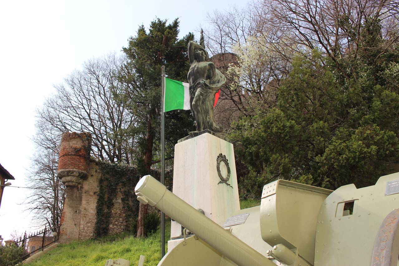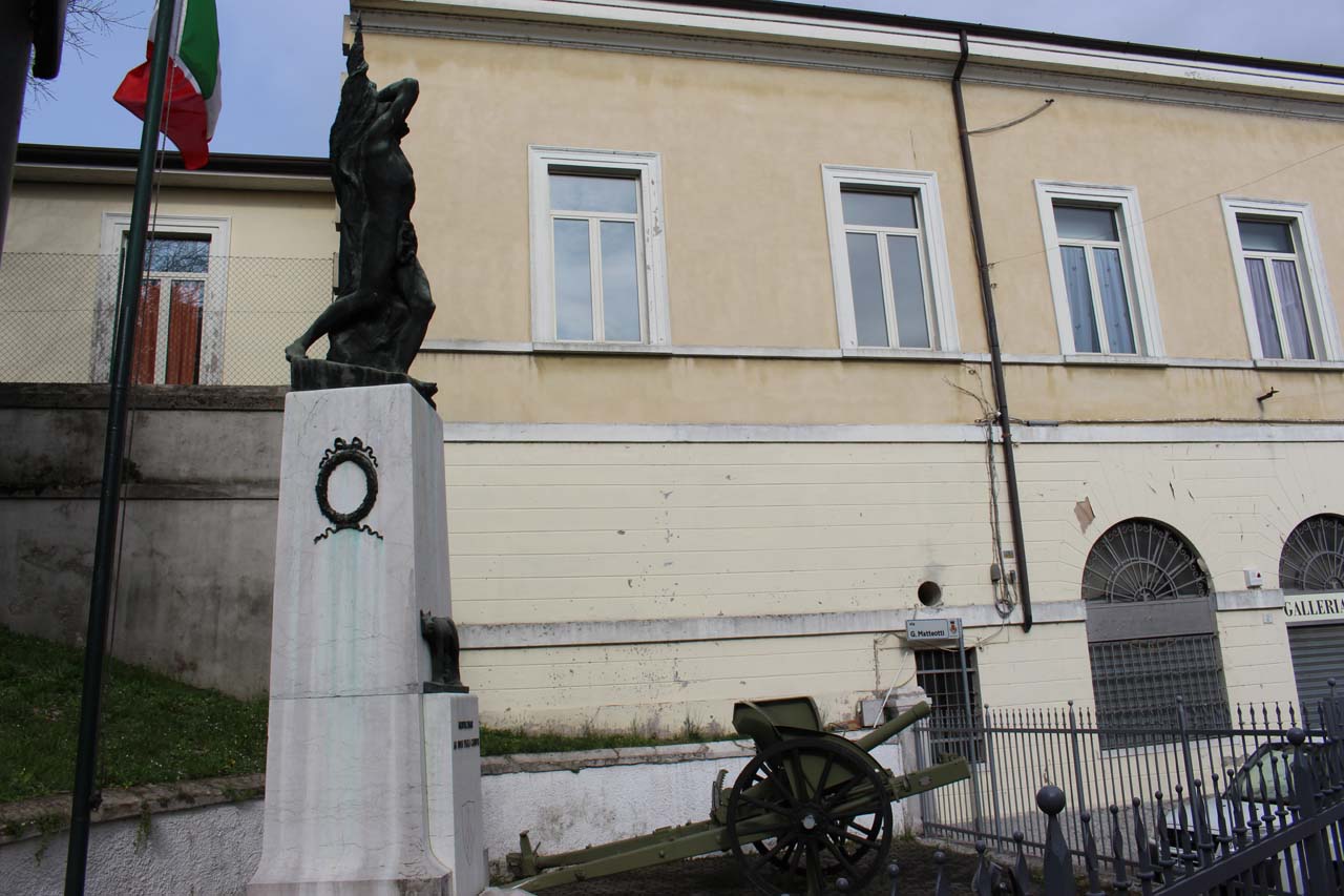 - NOTIZIE STORICO CRITICHE L'iniziativa di erezione del monumento ai caduti risale al 1919. Il monumento fu finanziato tramite pubblica sottoscrizione ed inaugurato il 24 settembre 1922. Nel 1928 venne posta davanti al monumento una lampada votiva con fascio littorio nel mezzo; la lampada, asportata nel secondo dopoguerra, ora si trova in deposito presso la sede locate della Associazione Nazionale Combattenti. Tra gli anni '70-80 venne posto di fianco al monumento un cannone Deport. La statua bronzea opera dello scultore Claudio Botta venne richiesta per la fusione nel primi anni ’40 per recuperare la lega metallica e far fronte alle esigenze del secondo conflitto mondiale. Nonostante il nullaosta alla fusione, la statua si preservò dalla requisizione. Fonti: Archivio Storico SBEAP MI, A.V. 153 "Monumenti Bronzei" - Fasc. Brescia e Prov.; ASBS, Fondo Prefettura, b. 3877, fasc. "Sostituzione monumenti in bronzo con monumenti in marmo". Bibliografia: A. Cazzani, I monumenti e i giardini celebrativi della Grande Guerra in Lombardia, Milano, 2012, scheda allegata “Montichiari_01”; Sitografia: Mostra virtuale “Bronzo alla Memoria, bronzo alla Patria. Dall’edificazione alla rimozione, storie di monumenti ai caduti tra le due guerre” (http://www.movio.beniculturali.it/sbeap-bs/bronzoallamemoriabronzoallapatria/index.php?pageId=1)